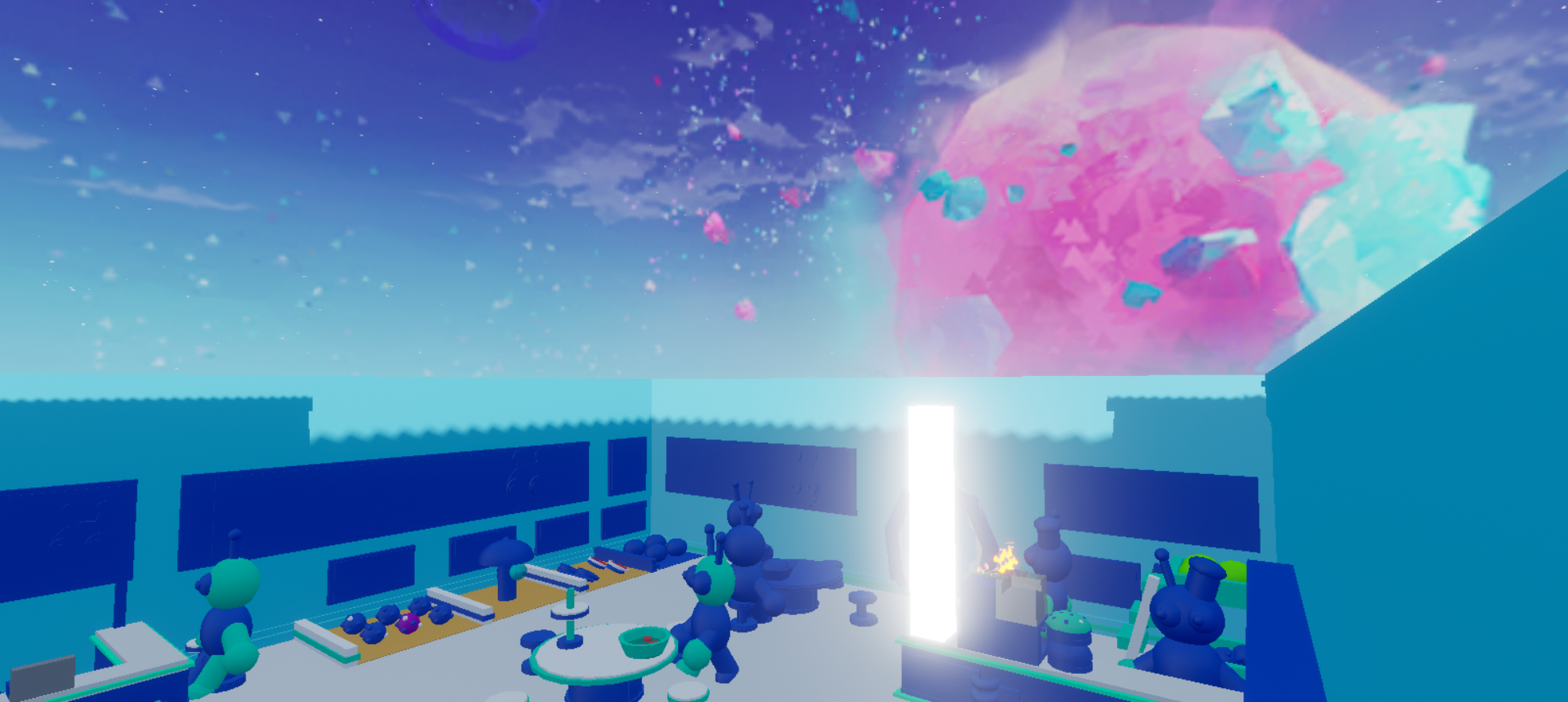 刚进入地图迎面而来的便是满满的赛博风氛围,地上构建的初音未来真的超级可爱!!!