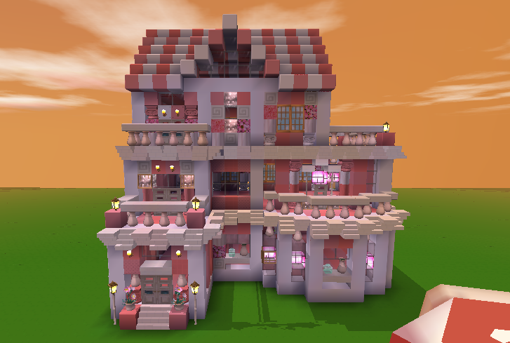 『粉紫闺蜜别墅』🌹刷到就赞😊建了两三天了今天上了色简单的布置了一下,下星期继续收徒,教你们建别墅