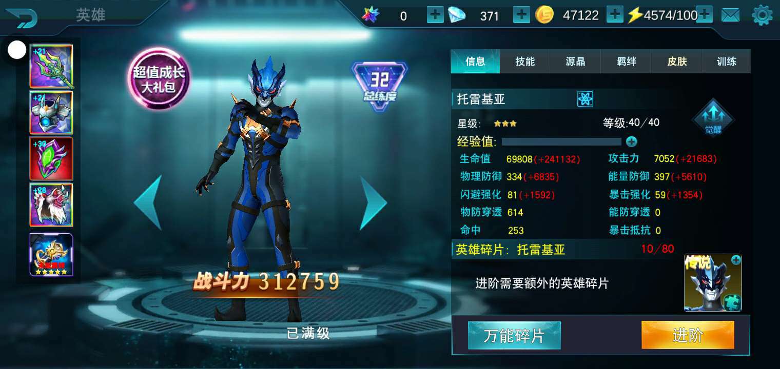 总战力终于突破100万。