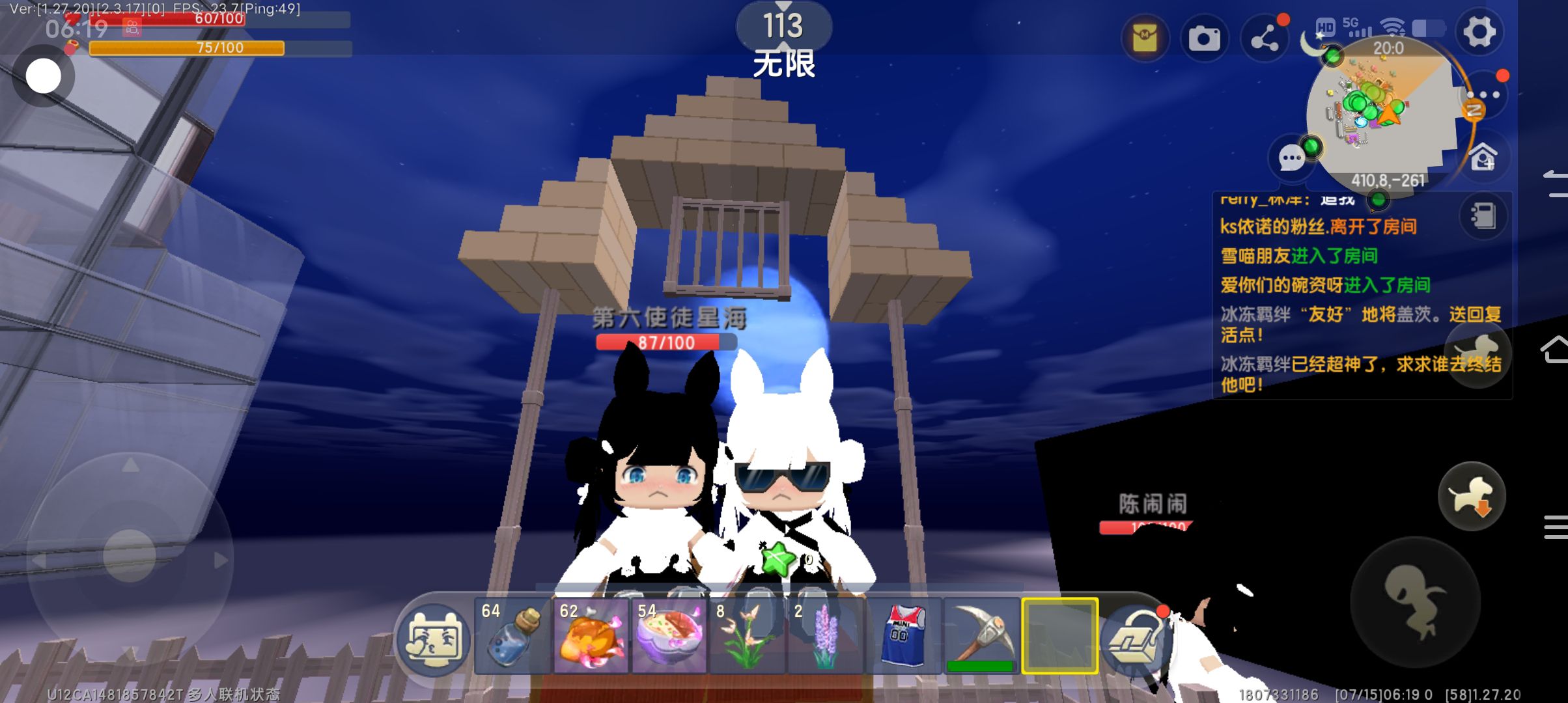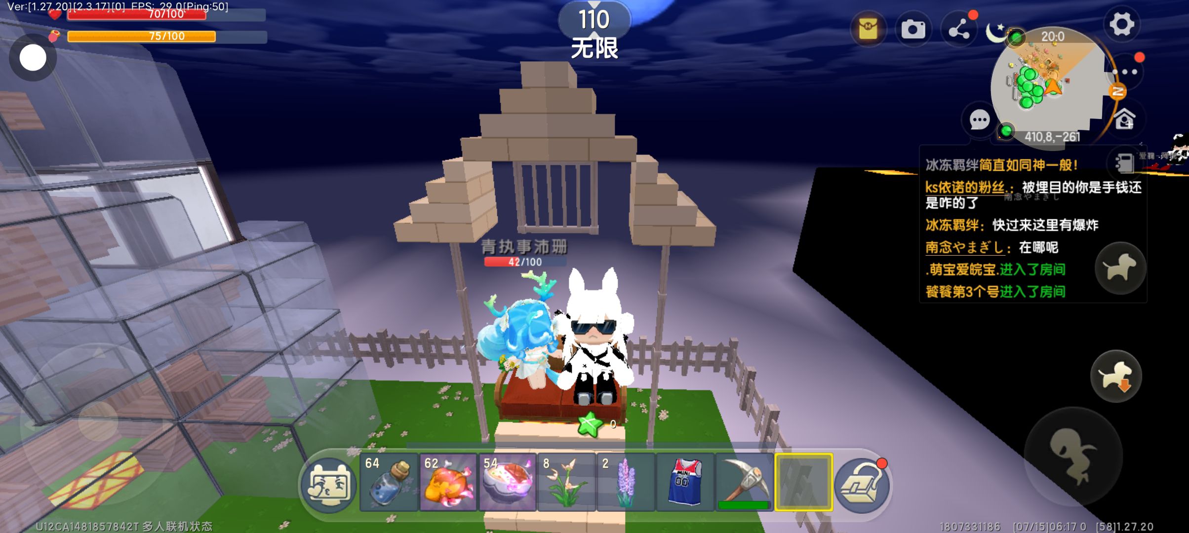 迷你世界好友。哈哈。结果下面那个被我气走了。在这里跟你说一声对不起
