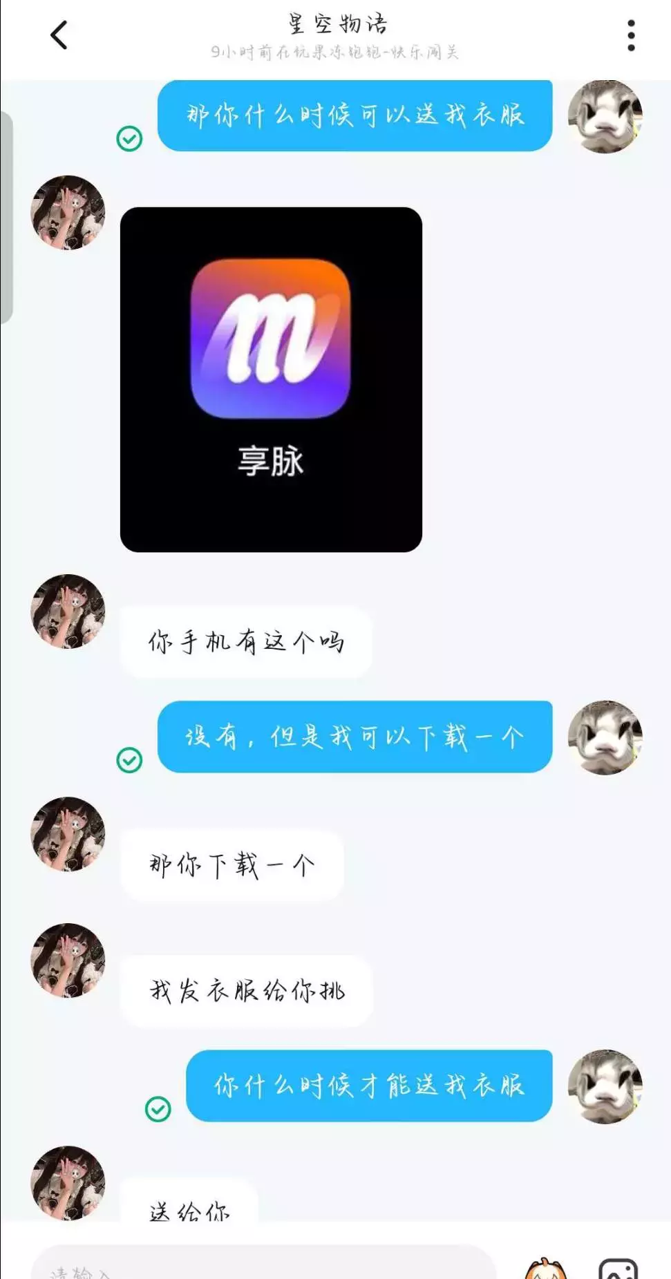 切记!!!可能会有大佬送我们衣服,但如果要我们下载什么软件绝对不能下,除非是常见的快手,抖音这些是可以下载的,如果是其他我们不认识的软件,我们可以用引用商城搜索这个软件,看看下面的评论,但有时下面的评论也不是真的