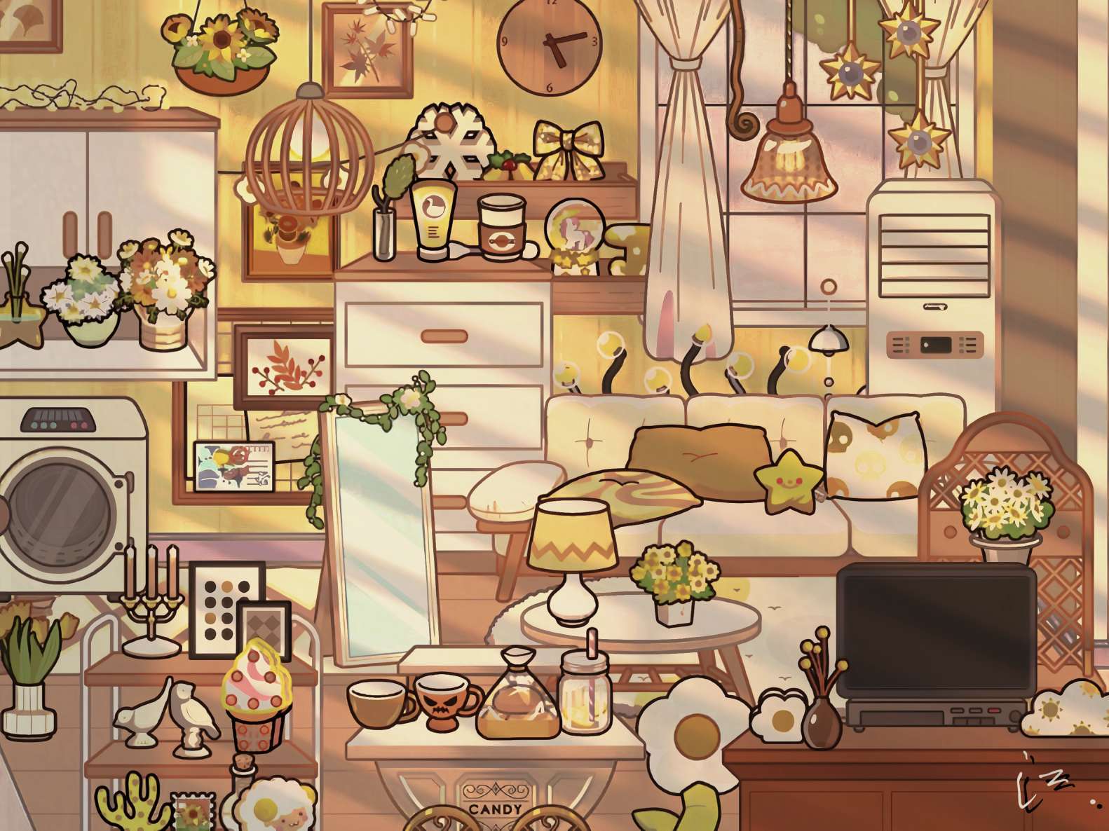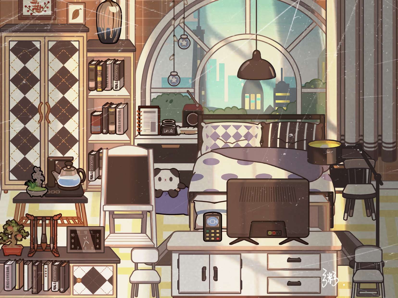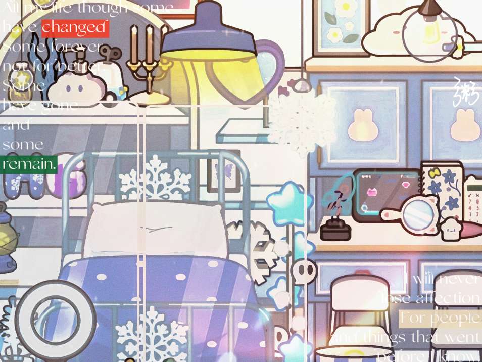 这就是我们本次场景最大的核心地方٩(๑ᵒ̴̶̷͈᷄ᗨᵒ̴̶̷͈᷅)و一个硕大的爱心被一条条五彩斑斓的细线紧紧缠绕,我们的江江就躺在这上面呢~宛如被温暖的色彩轻轻拥抱。在这些绚烂的线条之上,点缀着几颗小巧玲珑的小爱心,它们仿佛是大爱心的孩子,或者是爱的信使,散落其间,增添了几分俏皮与温馨的气息。整个画面既展现了爱的丰富层次,又流露出细腻而深情的情感。