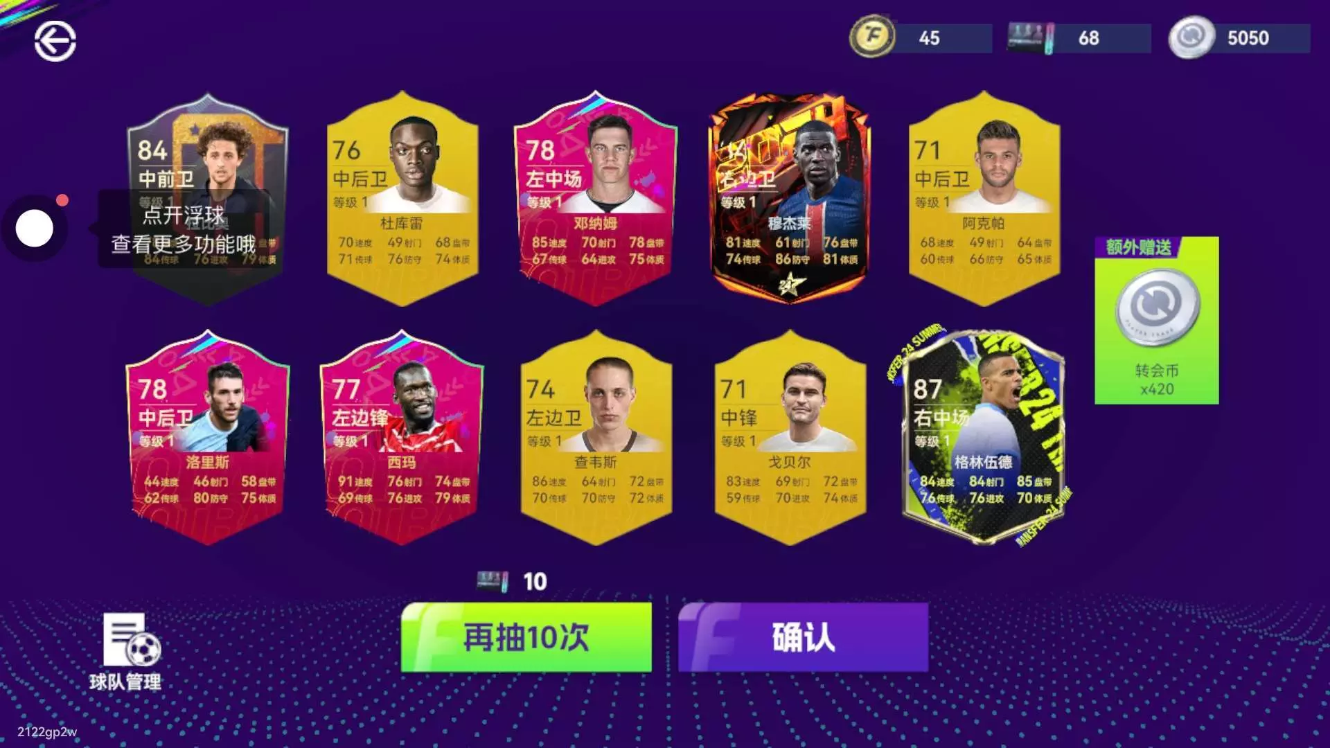 这不才刚说完我球探出了张多纳鲁马吗,然后今天签到领的85+出了张b席,我英超套还刚好用得上,今天真是双喜临门,梅开二度,哈哈哈哈