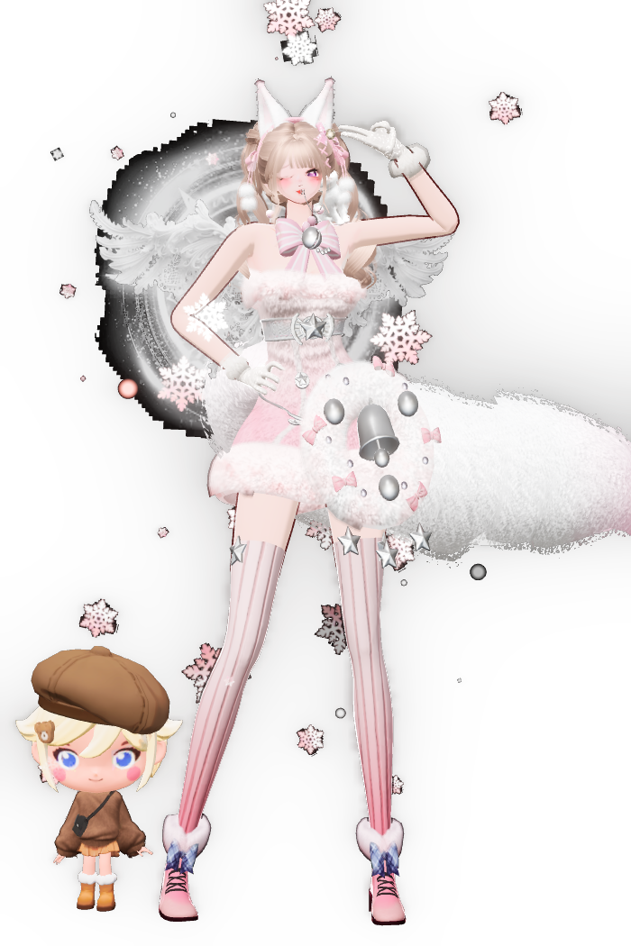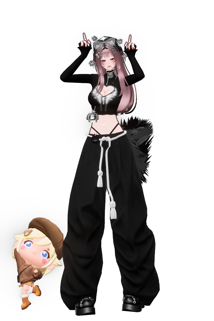 这套为233秋季时装周而打造的秋季穿搭,风格融合与细节。发型采用双丸子搭配蕾丝发箍,甜酷风格明确,发箍的精致纹理为整体增添了细腻感。上衣以针织衫叠穿廓形外套,黑白红的撞色设计富有视觉张力,针织材质传递出秋日的温暖质感,廓形外套的纹路细腻且极具街头飒爽感,袖口的独特造型让角色在动态中更具表现力。