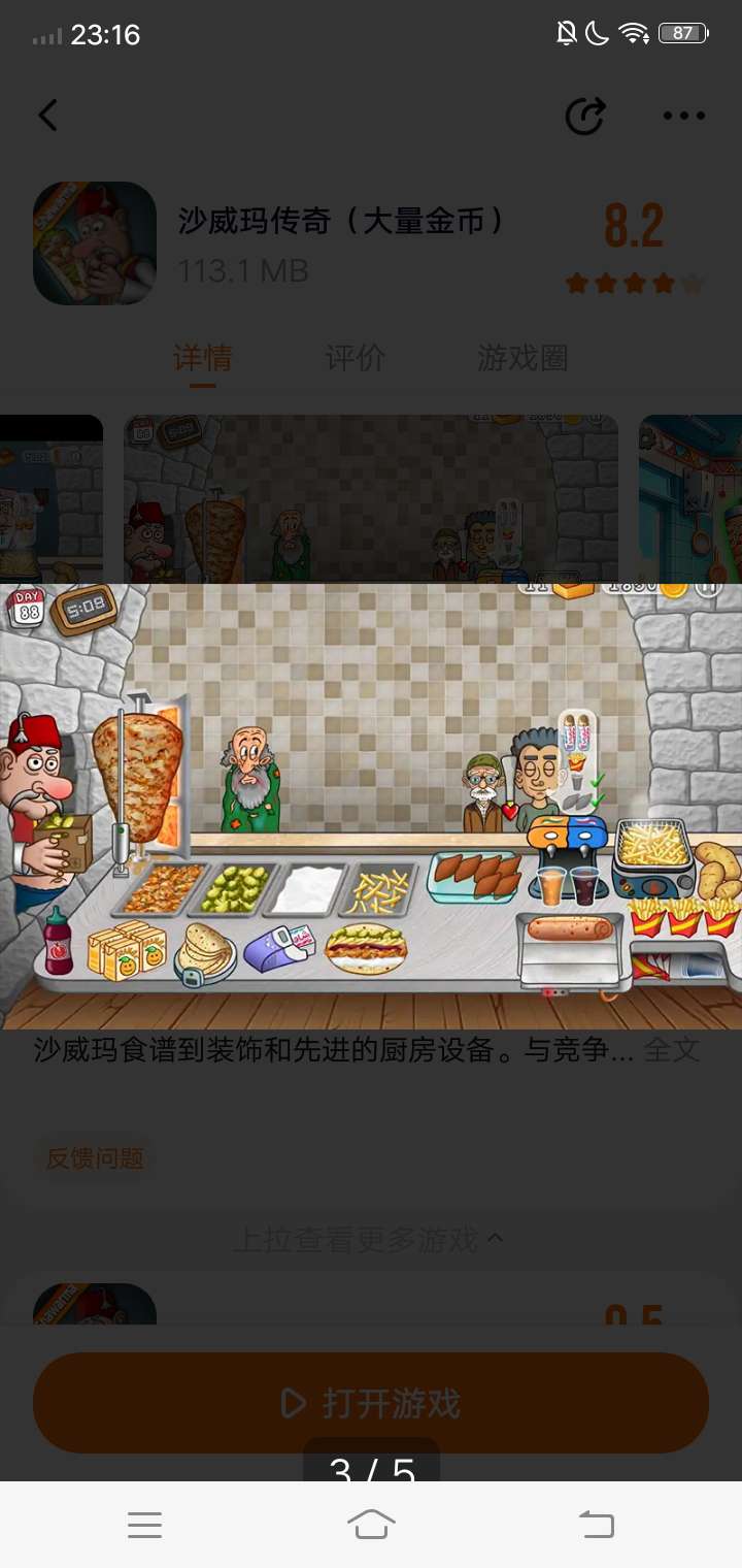 沙威玛传奇:真正的沙威玛体验! 你是否曾经想过经营自己的沙威玛餐厅是什么样的感觉?沉浸在沙威玛传奇中,这是一款最新且最激动人心的烹饪游戏,让你进入美食世界。精确地完成顾客的订单,让你的餐厅繁荣发展。 升级你餐厅的各个方面,从最新鲜的食材和最美味的沙威玛食谱到装饰和先进的厨房设备。与竞争餐厅一较高下,争取成为城里最好的沙威玛大厨! 游戏特色 提供你的语言版本:游戏完全提供中文版本,包括语音和文字。 有趣的卡通动画:享受将你的沙威玛餐厅变得生动的动画。 令人兴奋的游戏玩法和无尽的挑战:享受令人兴奋的游戏玩法和无尽的挑战。 逼真的模拟:体验设计得尽可能接近真实餐厅的游戏中的沙威玛大厨的生活。 真实的沙威玛准备:从烤架上切下沙威玛并真实地包裹三明治。 全面的升级:用顶级设备和装饰提升你的厨房,加快服务速度,让顾客满意。 可定制的沙威玛:让顾客根据他们的喜好定制他们的沙威玛三明治。多样化的顾客基础:为无数的顾客服务,每个人都有自己的沙威玛偏好。