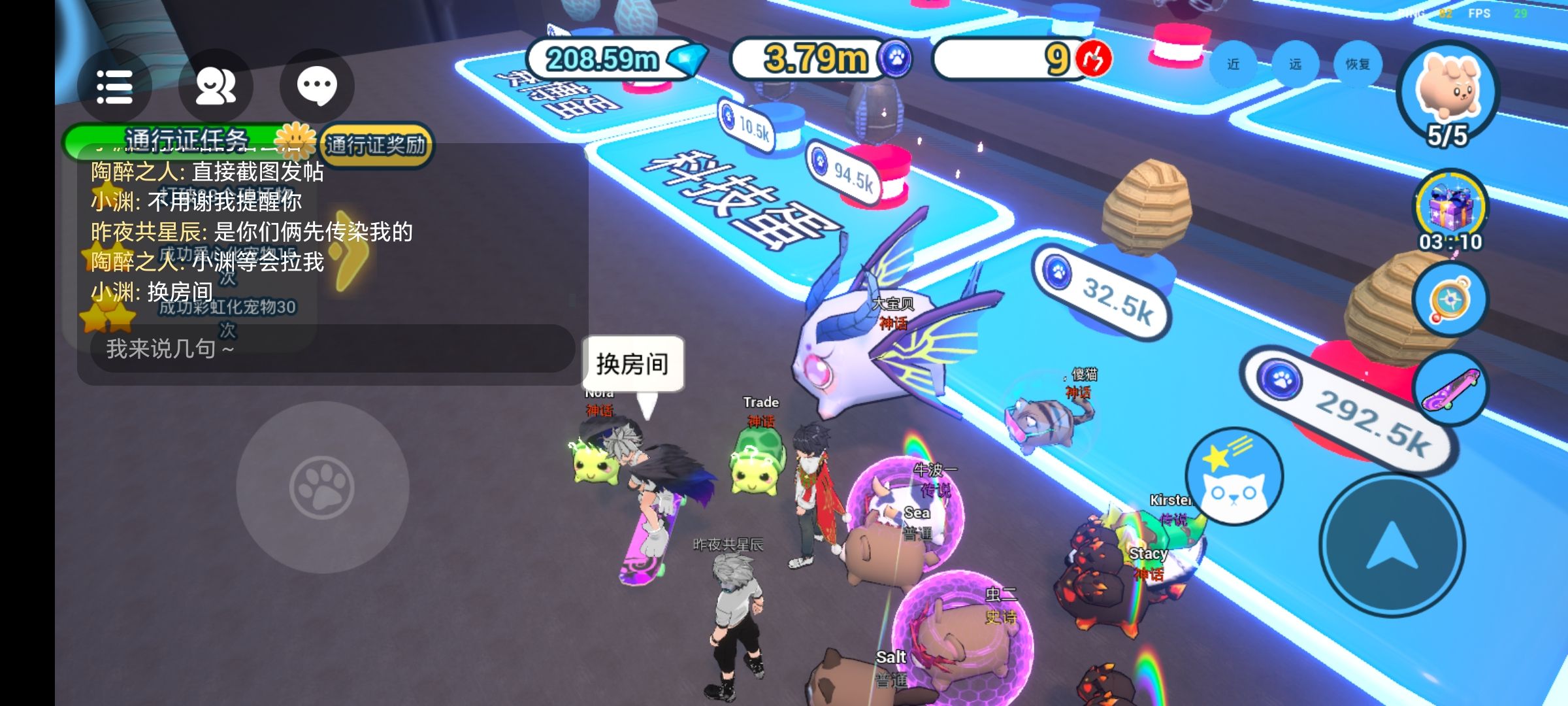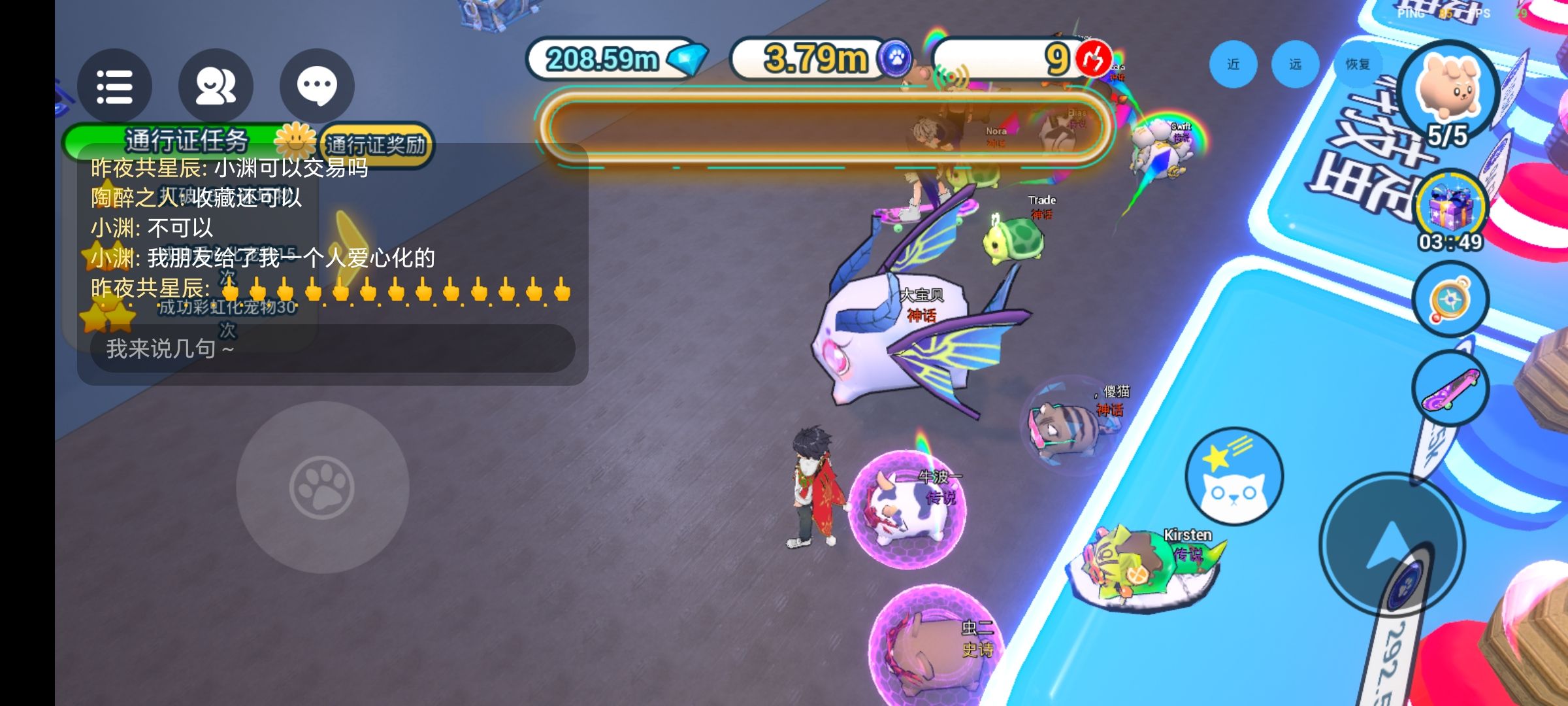 呀,某些人换不到宠物急了呢,(左上角聊天框)