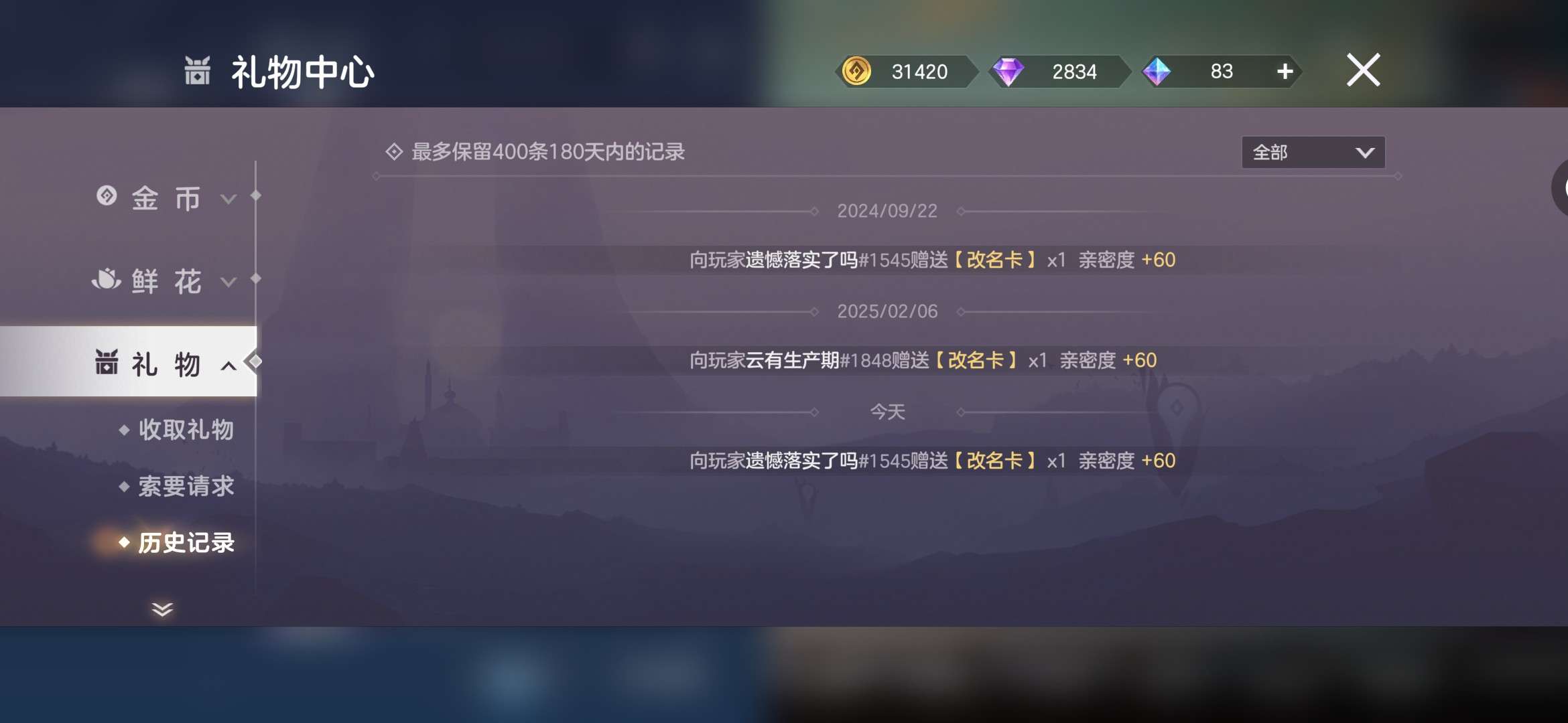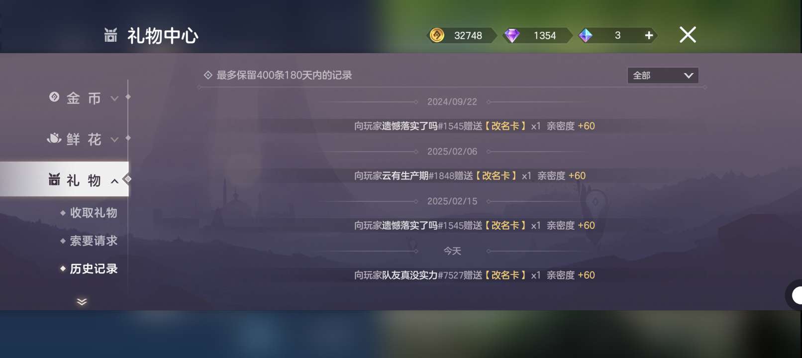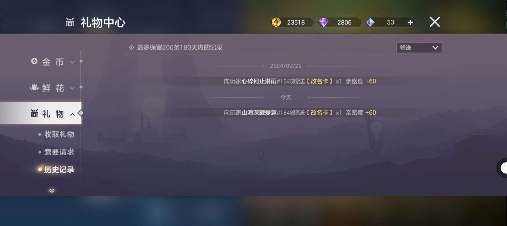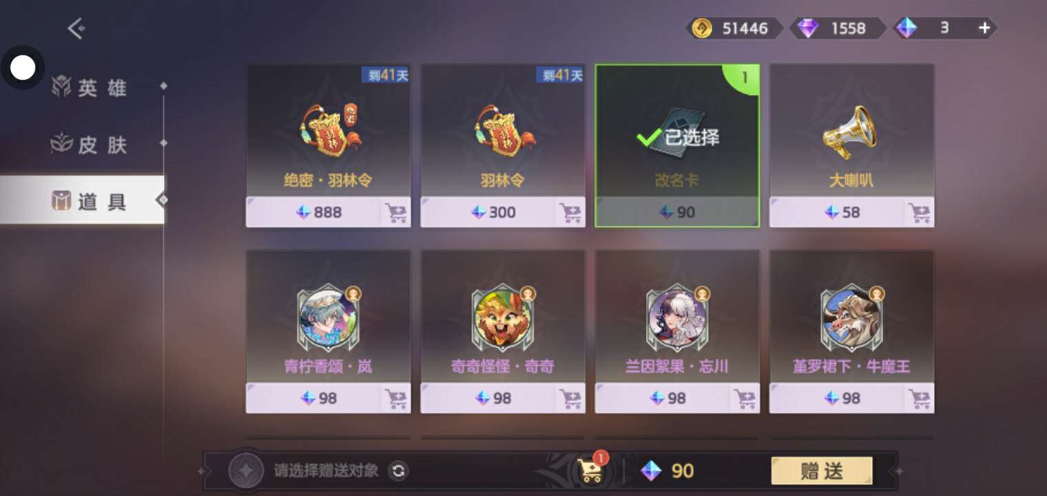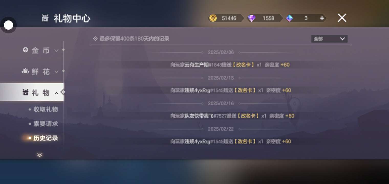 改名卡已送,其他人可以等下次