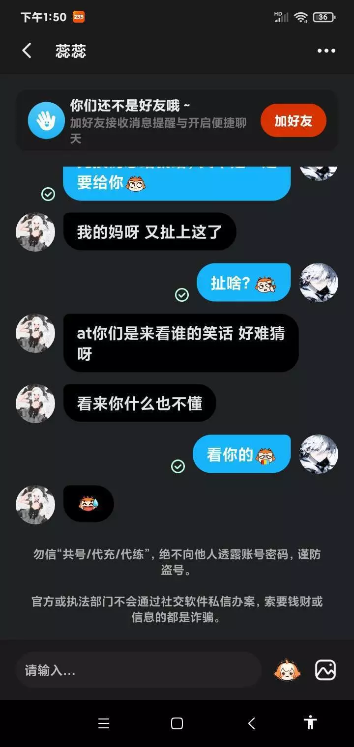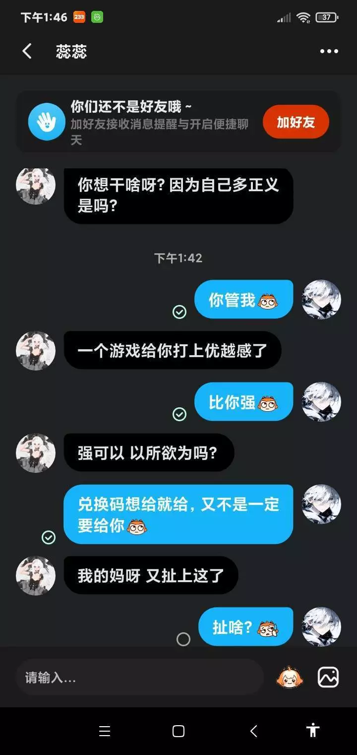 事情的起因是有几个萌新在世界要兑换码,和公主一样,这一点大家可以问远妄,苍白幻想。后来我看到那个萌新写小作文,我就艾特了几个好友,然后另一个萌新就在那阴阳我(图中应该有,没有就是忘了截)还私信嘲讽冷清,西红柿,后来又给我挂帖子上了,骂的很难听,还找人举报我,我开始一个脏字没带,在萌新评论区蟾蜍说可以找人带,那个萌新说带了也没用,我有的是实力,后来人家又发帖求带,她挂我的帖子已经删了,我不想骂你,也从来没想过骂你,只是你一次一次挑战我们的底线,非要在开学前整不痛快。现在喷射成什么了,能不能别告诉陌生人兑换码,也不要问别人,除非你到了钻石以上,老玩家能不能让他们走一遍我们走过的路,还有那些知道兑换码在世界说出来的,你们收敛一下吧,不要把喷射搞的乌烟瘴气。(这一段是根据暑假期间喷射风气总结的体会)希望大家开学可以好好学习,寒假再战!#喷射对决 @冷清 @Tomato『开学暂退😭』 @La蝉zY% @风吹雪 @玖玖.师:小野马 @夜黎 @韵华镜中池师.小野马 @白·白(可谈) @尘(师:锦曦:仪婷)(师:朦胧) @尝自己的血-扛自己的梦