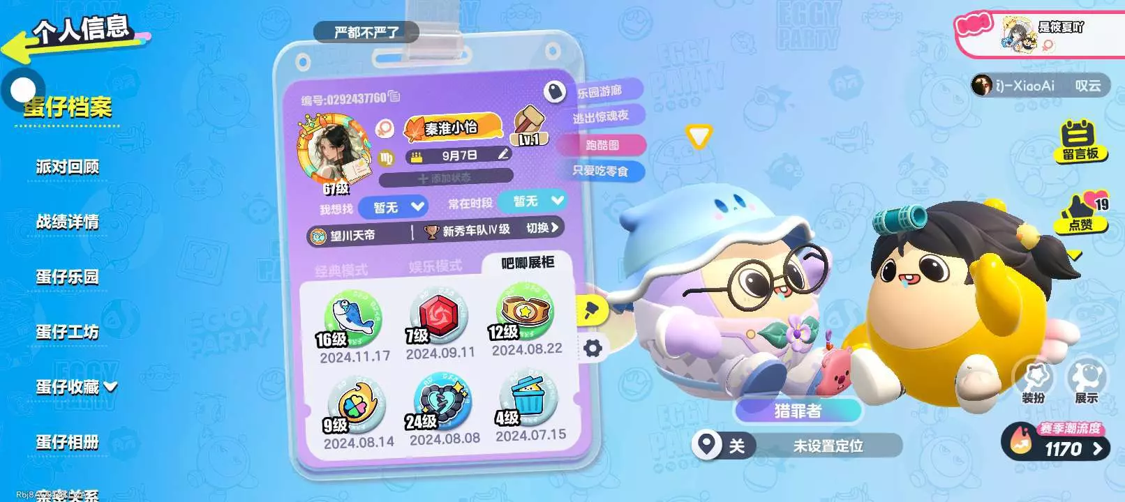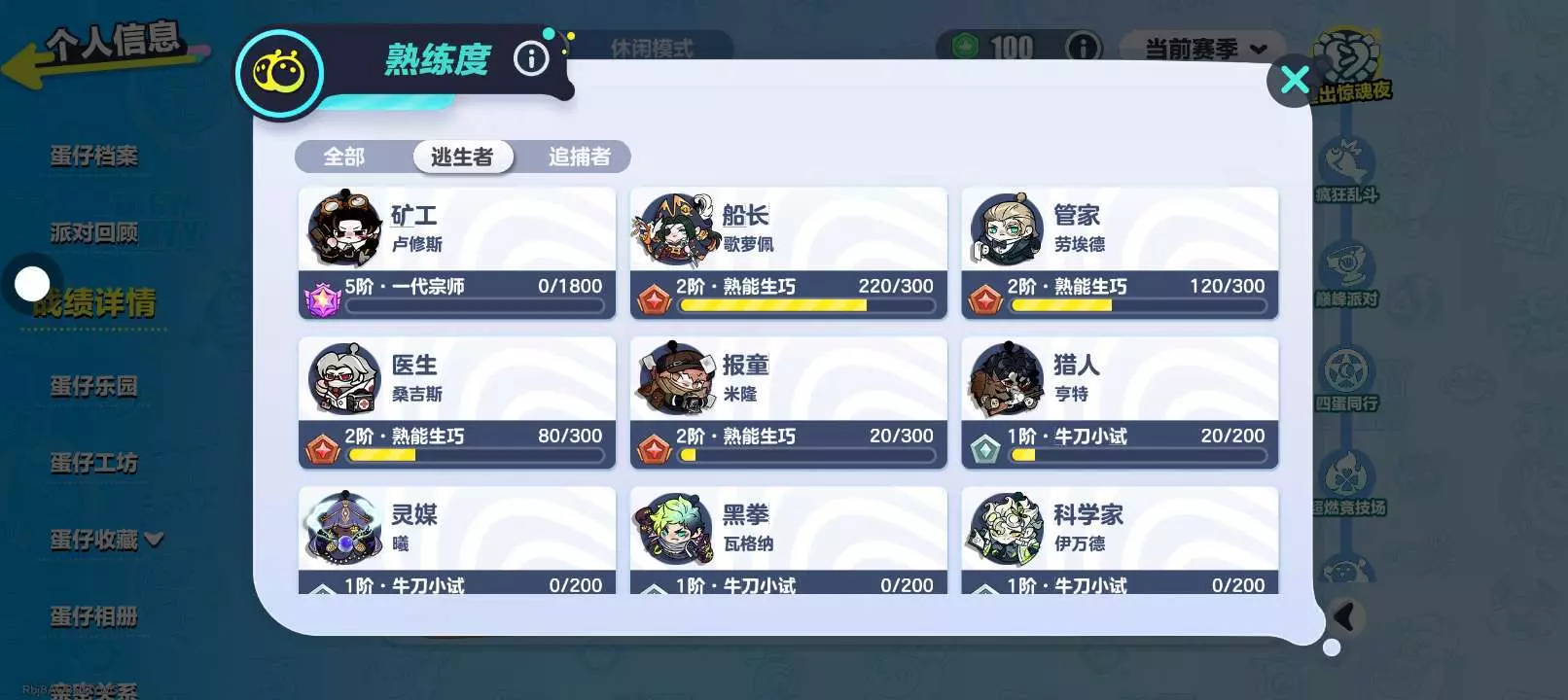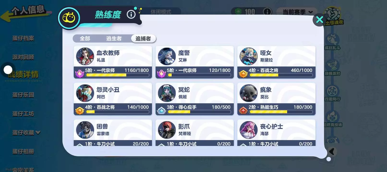 玩蛋仔,主玩惊魂夜追捕,找一个不嫌我菜能我把已有的追捕上紫标的 小学生,勿喷