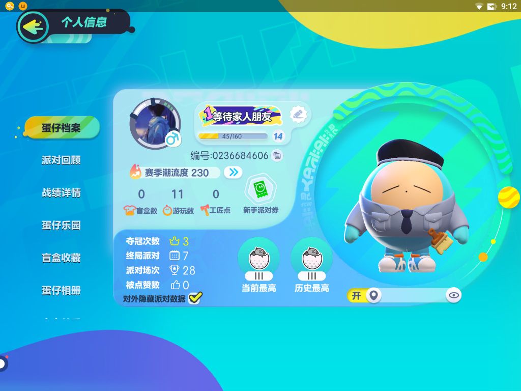 【6月16日蛋仔欢庆1周年开启,十大重磅福利等蛋来薅!】 *蜀风川韵系列盲盒上线,“川剧少女梧桐”皮肤登场* *新玩法“庄园系统”震撼上线!* *完成流浪小象哆哆的约定,领外观及专属动作* 注意啦!你已进入盲盒世界,萌蛋来袭,派对开启!《蛋仔派对》是一款潮玩题材的休闲竞技手游,在这里你将化身Q萌蛋仔,加入热闹非凡的闯关派对。让我们一起撞走不开心,结交好碰友! 海量关卡,陷阱机关,争先恐后往前冲!奔跑、跳跃、翻滚,发生超真实的物理碰撞!百变外观任你搭配,潮流、酷炫、萌趣的盲盒等你收入囊中!更有零门槛地图编辑器,DIY你的专属关卡!