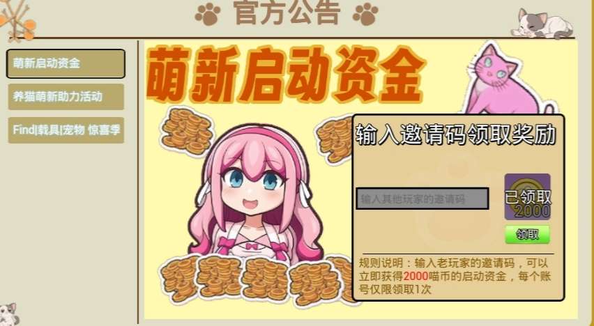 萌新输入邀请码59422711点击领取后可得 2000 喵币 『点赞叫宝宝 不叫=不在线』