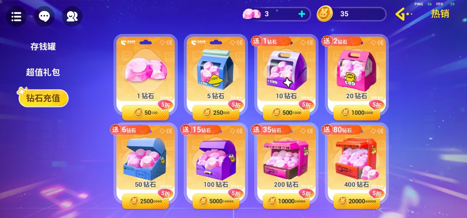 活动二:钻石礼包全场五折!