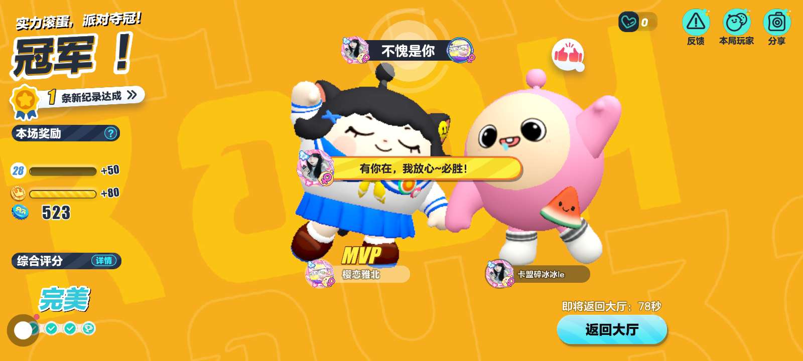 我夺冠啊!你们愿意做我的蛋搭子吗?