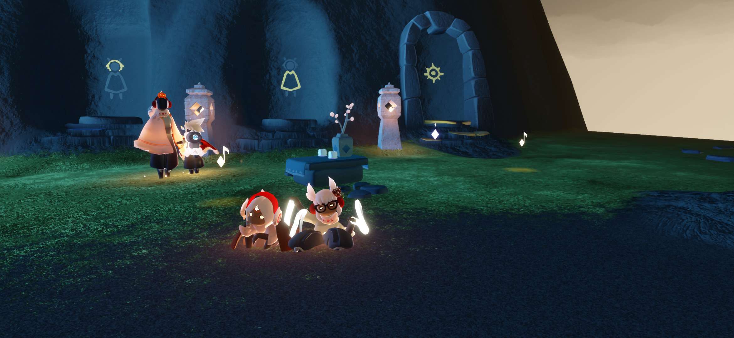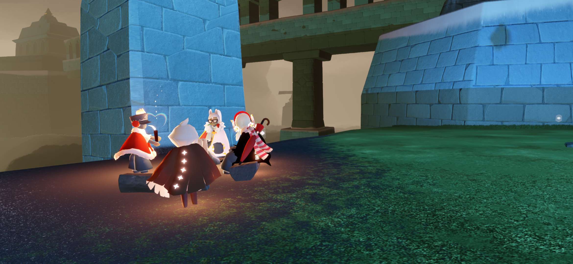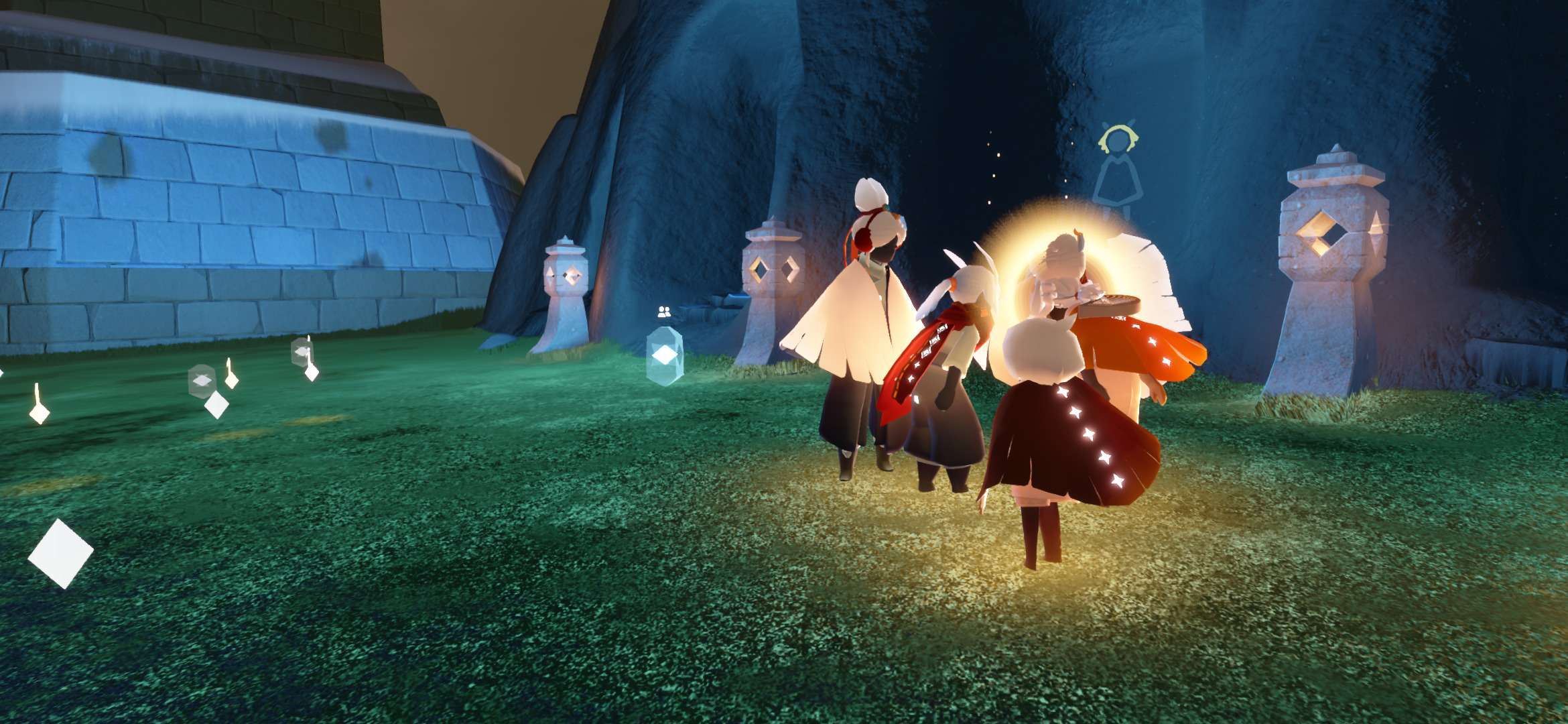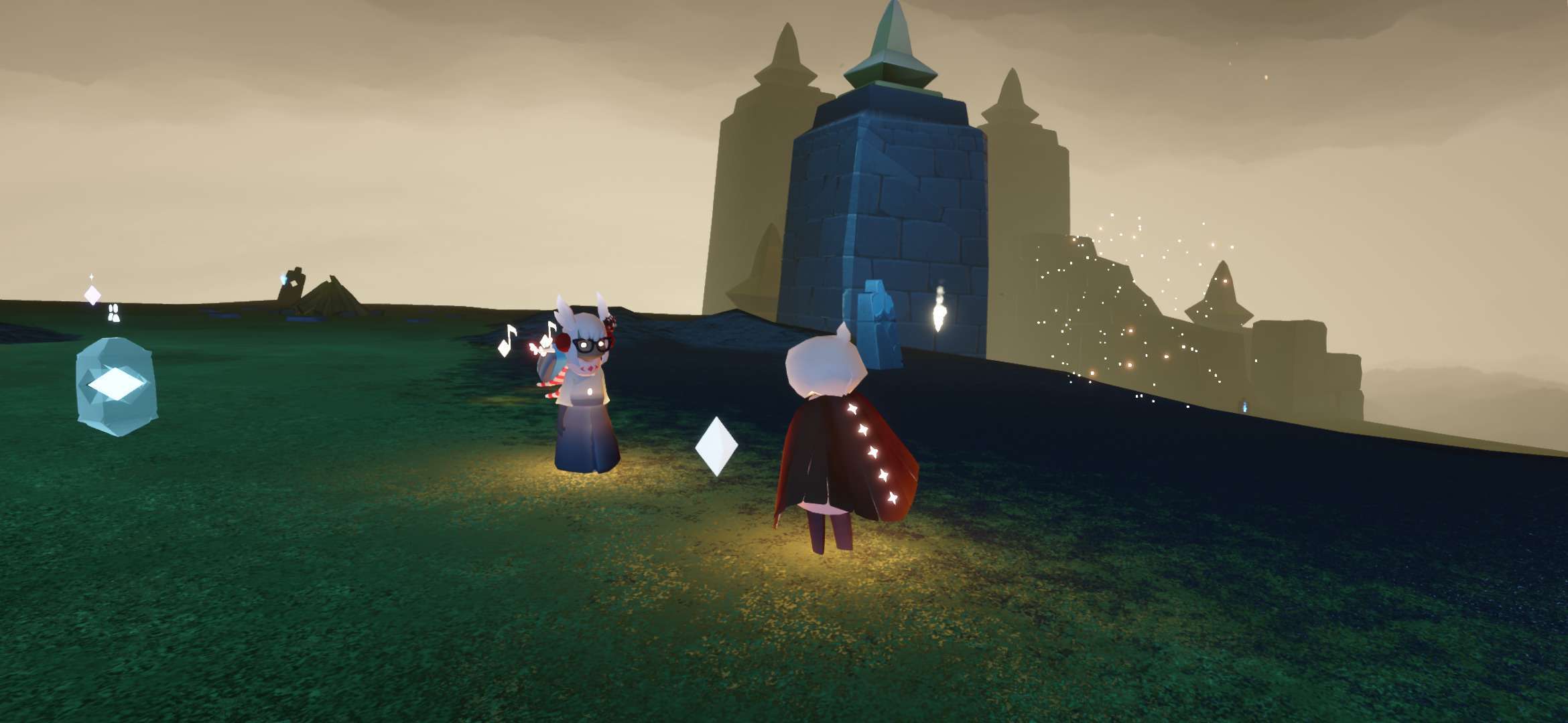 事情就是我在墓土监视小黑,点火后发现长得还行,然后有个萌新说有人谋财害命,点火后发现一只白鸟,后本人与萌新开始装光遇两大派,本鸟也非常配合穿上蝙蝠斗,后突然发现(倒数第三幅图)菇菇对面儿的小黑开挂了,此白鸟立刻叫我们下去点火,那小黑说的话我们几个都能看见,随后消失了最终在他传回遇境时,我加上了此白鸟,发现这人开挂开更大,直接不解锁蜡烛背背,以光速拿完光翼🤔