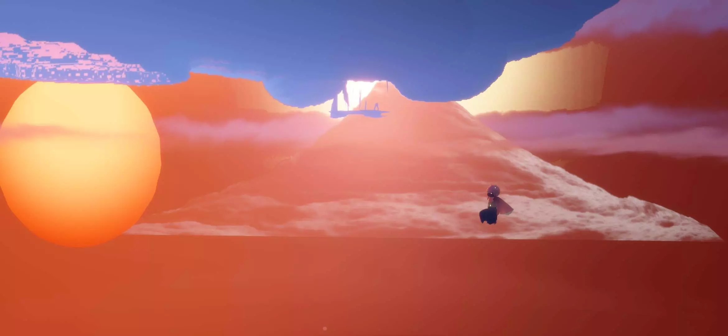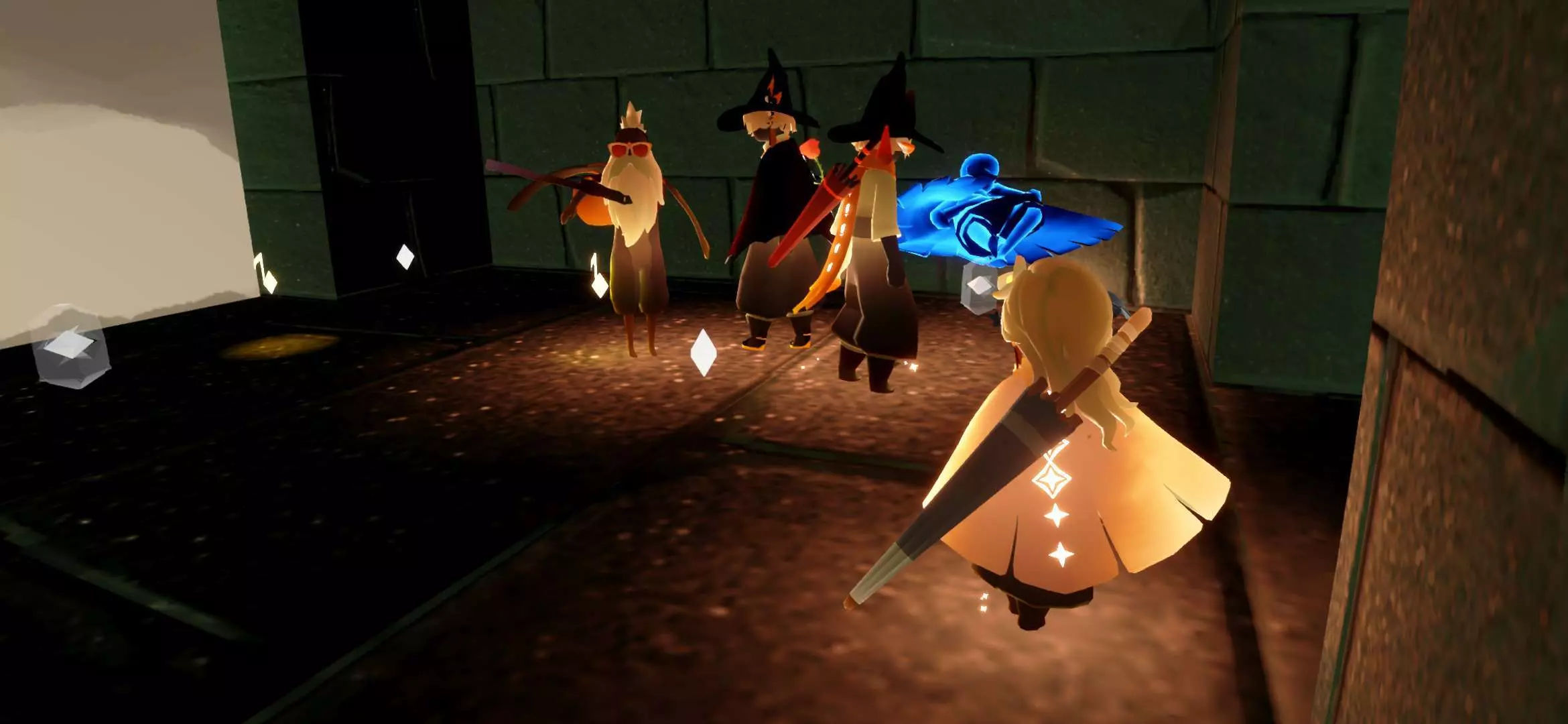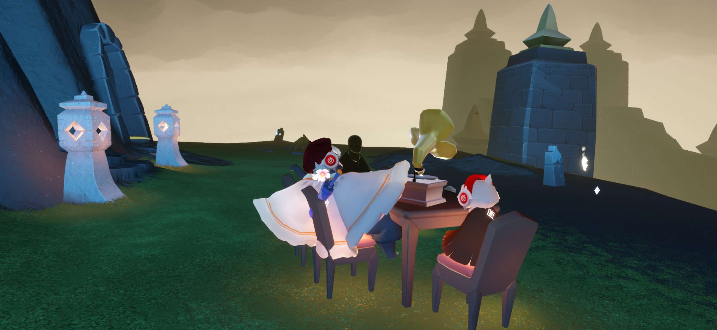 事情就是我在墓土监视小黑,点火后发现长得还行,然后有个萌新说有人谋财害命,点火后发现一只白鸟,后本人与萌新开始装光遇两大派,本鸟也非常配合穿上蝙蝠斗,后突然发现(倒数第三幅图)菇菇对面儿的小黑开挂了,此白鸟立刻叫我们下去点火,那小黑说的话我们几个都能看见,随后消失了最终在他传回遇境时,我加上了此白鸟,发现这人开挂开更大,直接不解锁蜡烛背背,以光速拿完光翼🤔