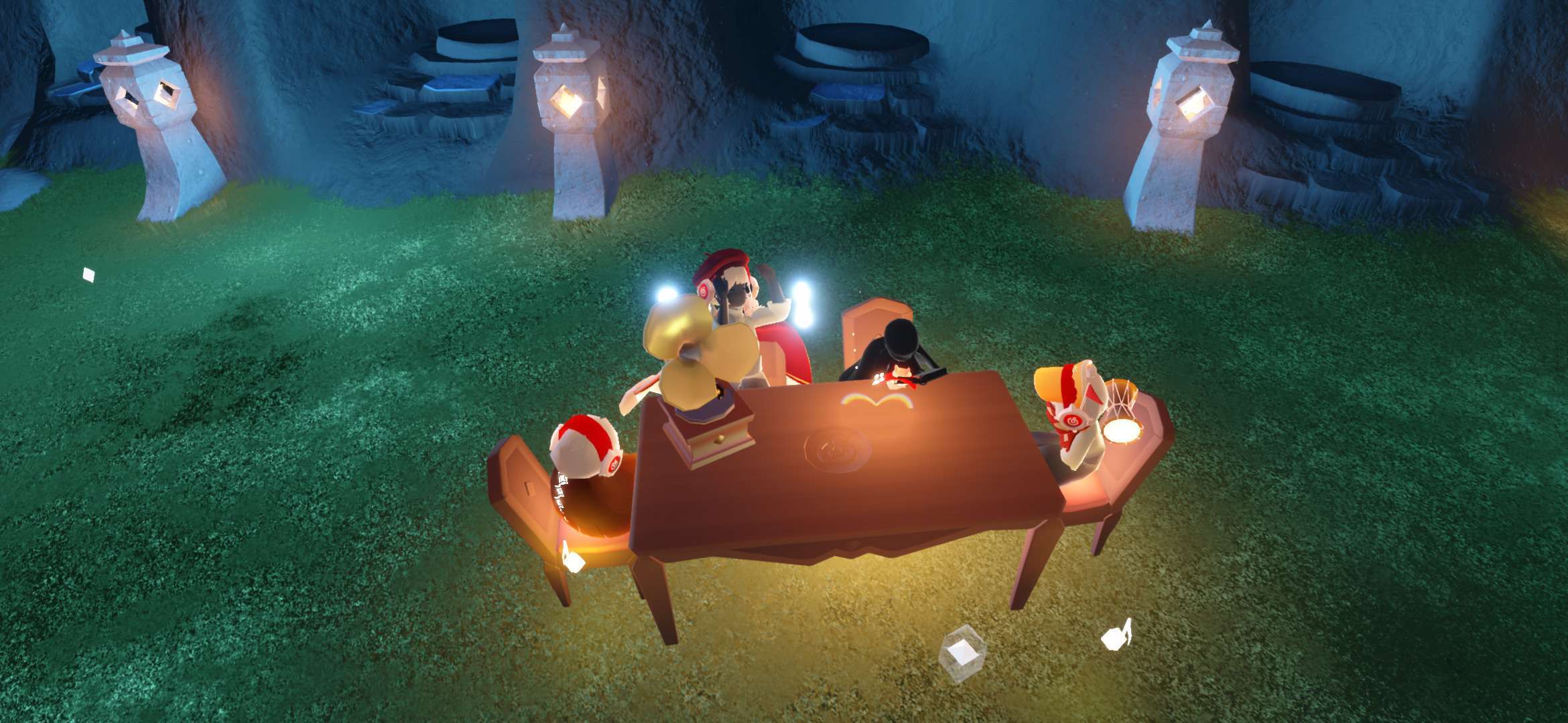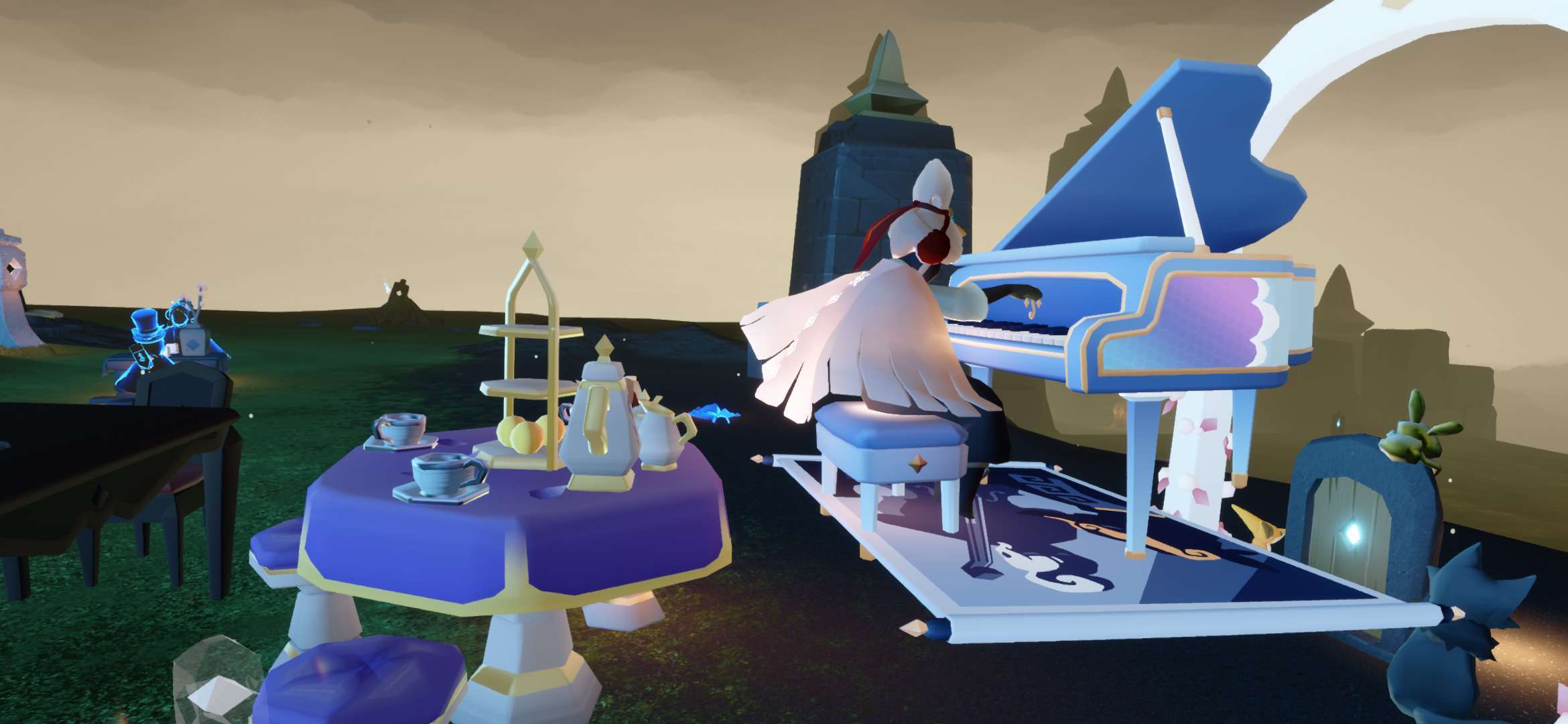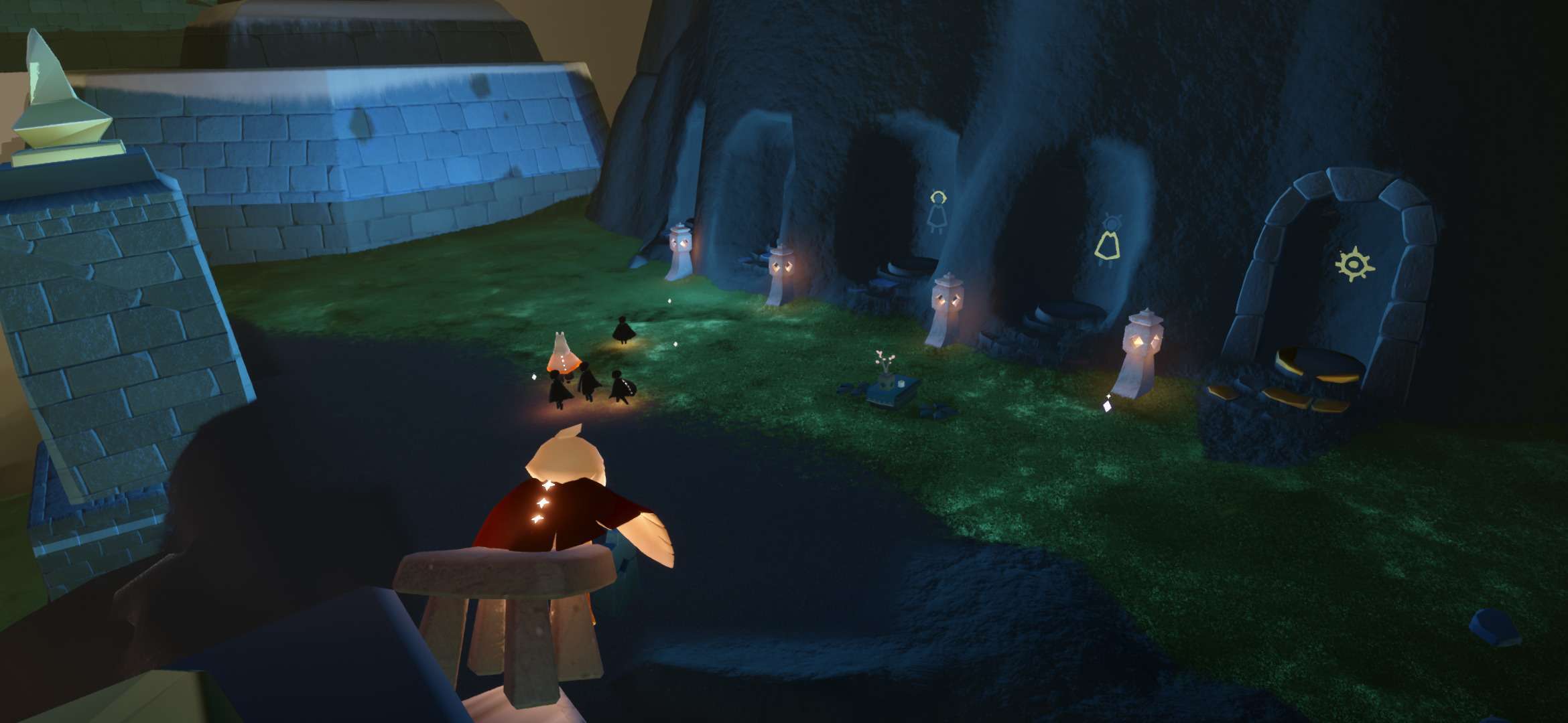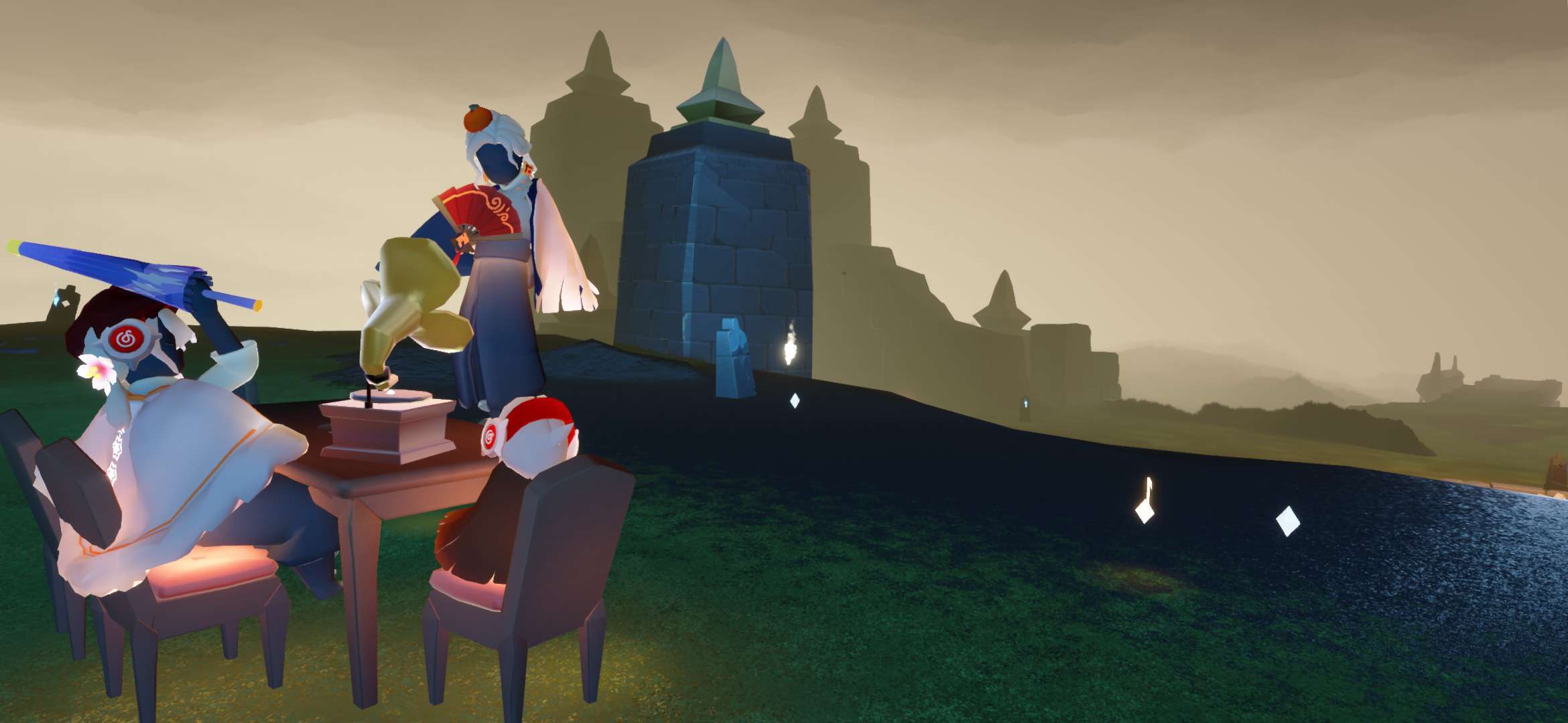 事情就是我在墓土监视小黑,点火后发现长得还行,然后有个萌新说有人谋财害命,点火后发现一只白鸟,后本人与萌新开始装光遇两大派,本鸟也非常配合穿上蝙蝠斗,后突然发现(倒数第三幅图)菇菇对面儿的小黑开挂了,此白鸟立刻叫我们下去点火,那小黑说的话我们几个都能看见,随后消失了最终在他传回遇境时,我加上了此白鸟,发现这人开挂开更大,直接不解锁蜡烛背背,以光速拿完光翼🤔