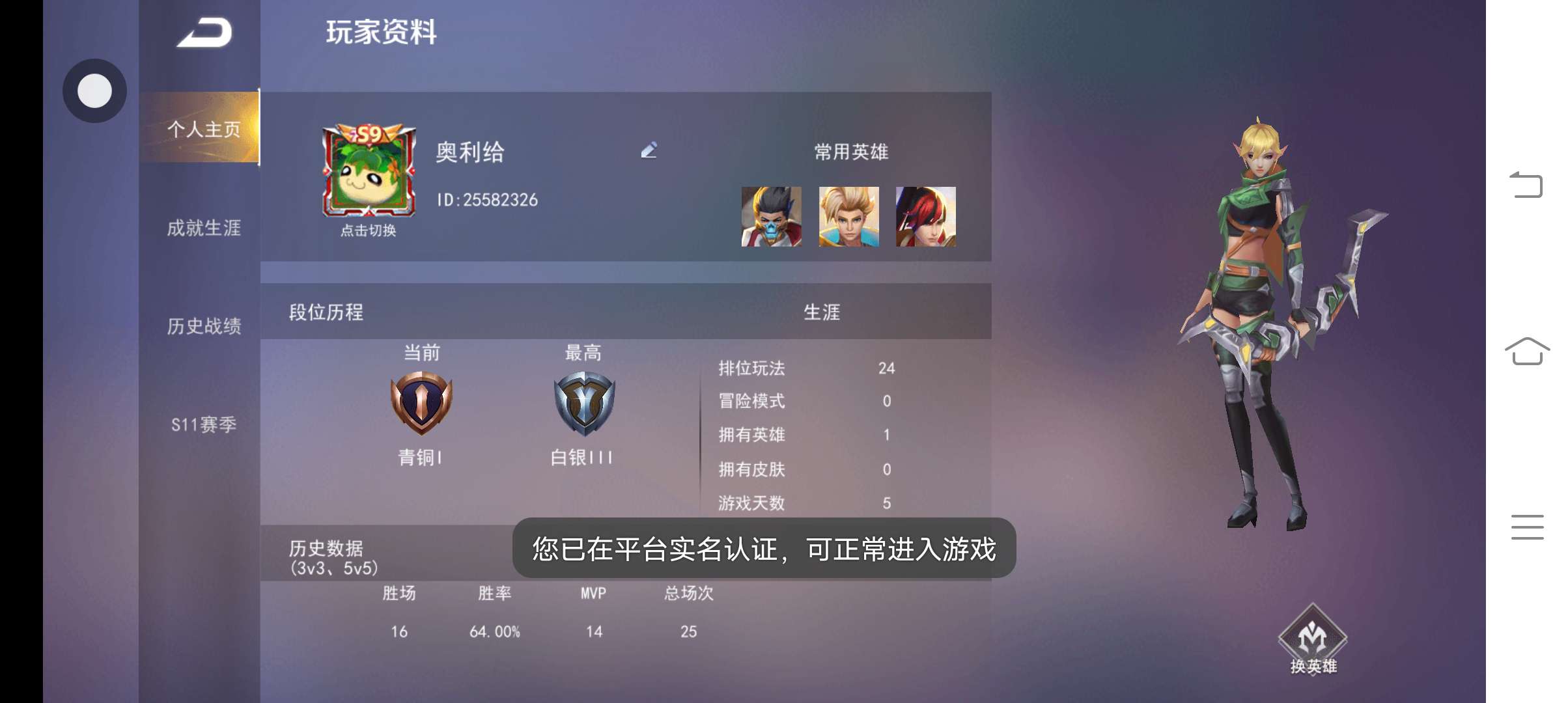 花了11天获得了信的皮肤,当年上学的时候获得后来没玩了