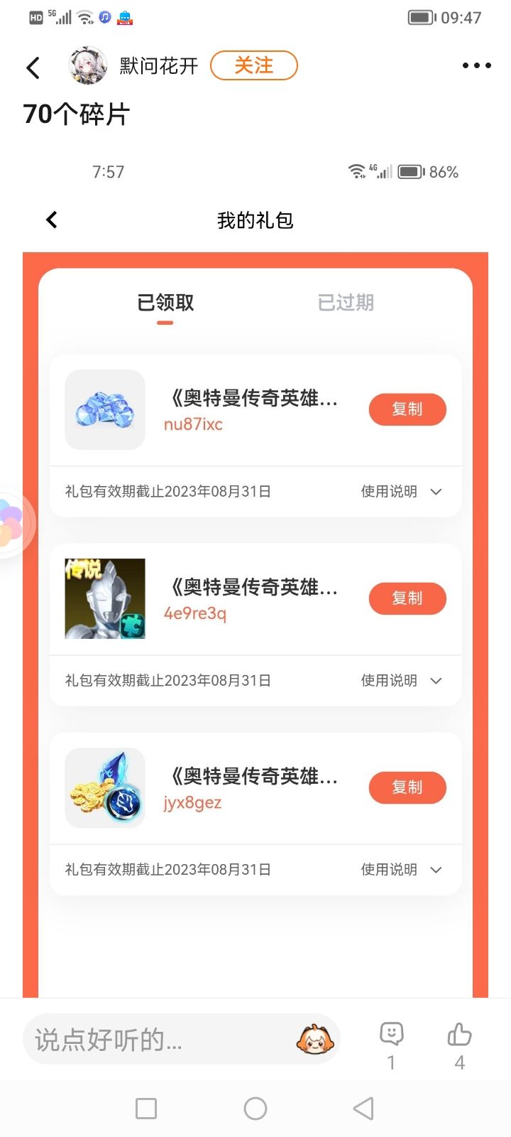我的彩龙还差七个传说选择兑换码,就六星了😭😭😭