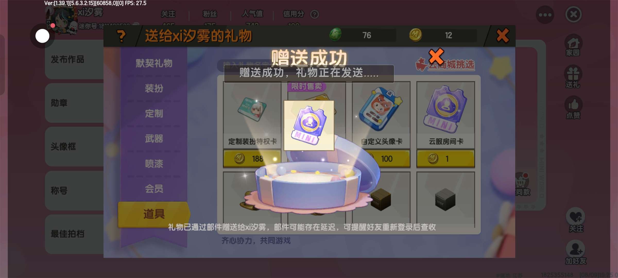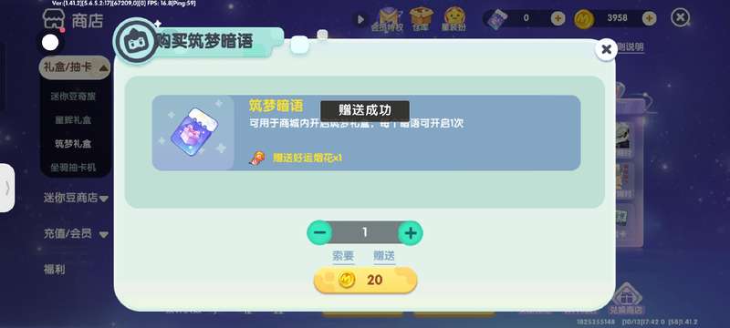 抽2人送出各10张筑梦