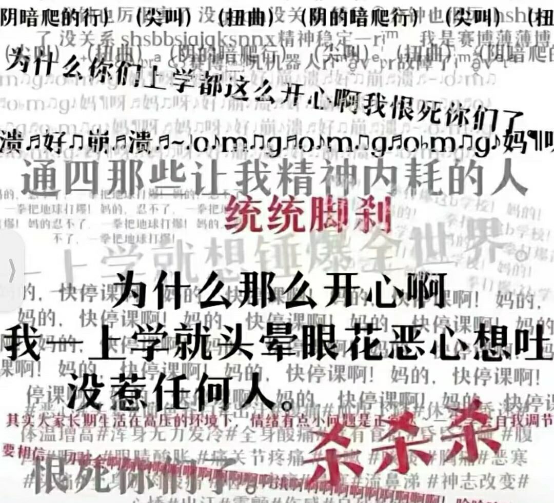 看见楼:想跳 看见树:想吊 看见河:想掉 看见刀:想割 看见车:想刨