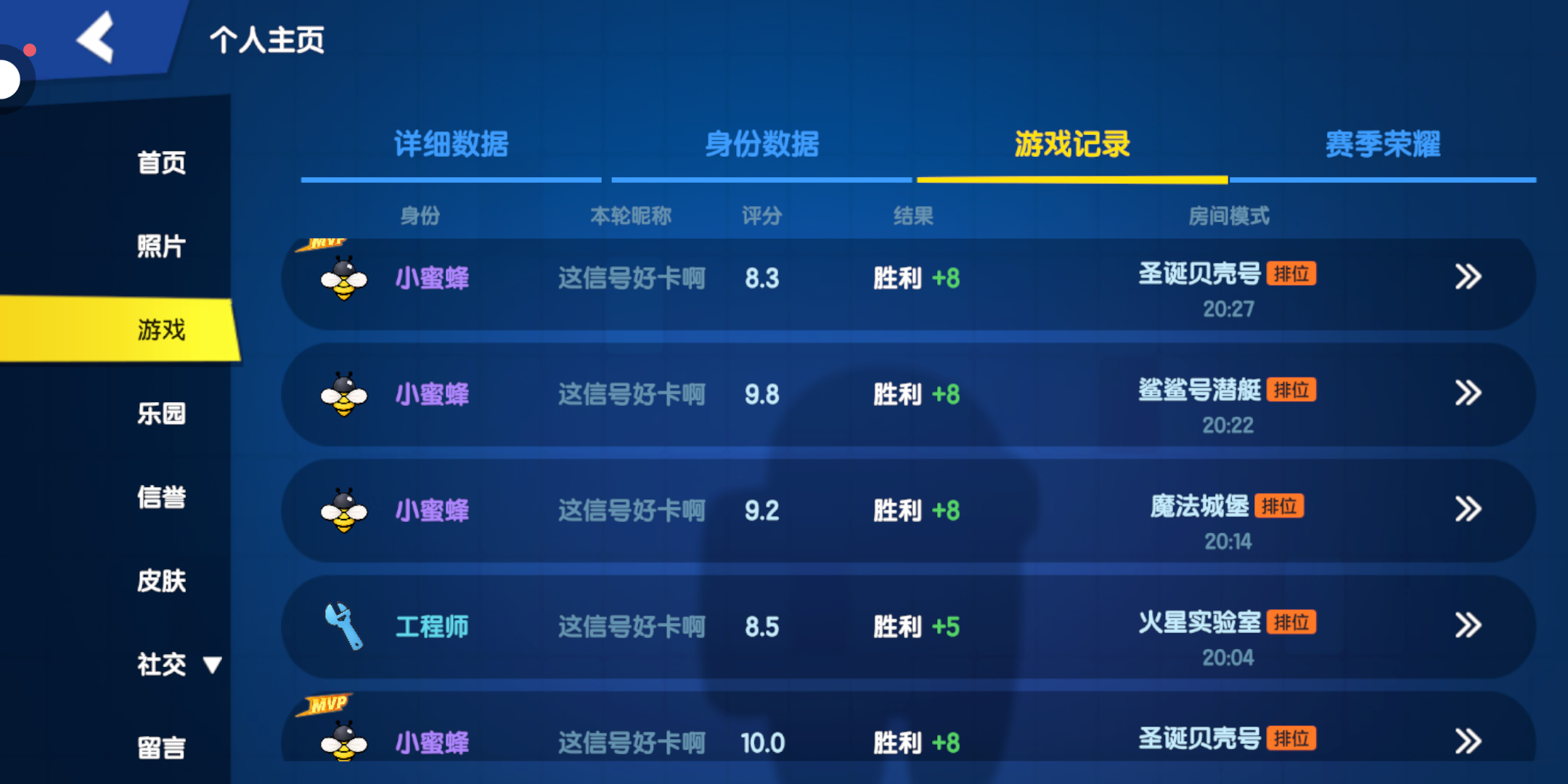 我带着恶魔1张身份卡1把船员6把中立,6把中立都没有恶魔,6把都有小蜜蜂而且都赢