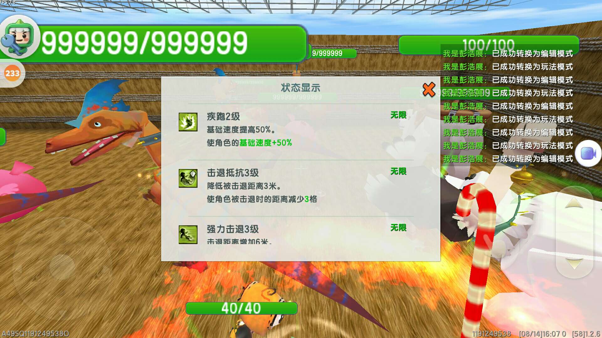这些动物的血量为:999999全是插件的功劳(当然也有触发器的功劳)微型战斗鸡🐔(他已经缩小了原来的1000分之一倍)