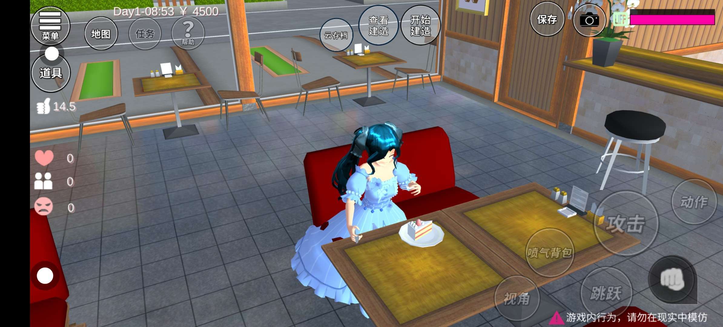 在樱花校园模拟器,有各种好玩的,真开心😊