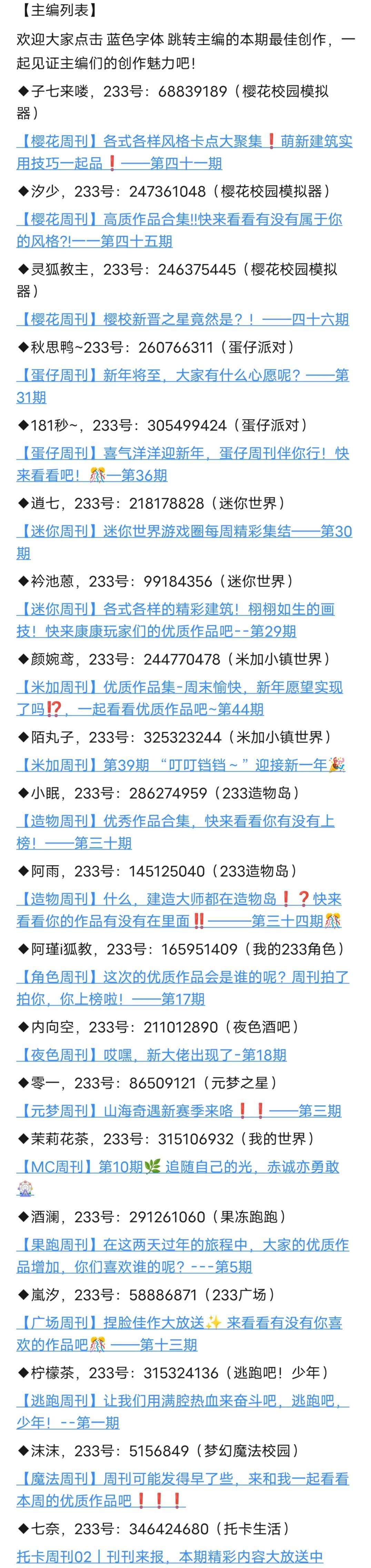 上榜奖励:233乐园会员7*天+"周刊创作之星"头衔*15+高级班推荐卡*1+精华帖