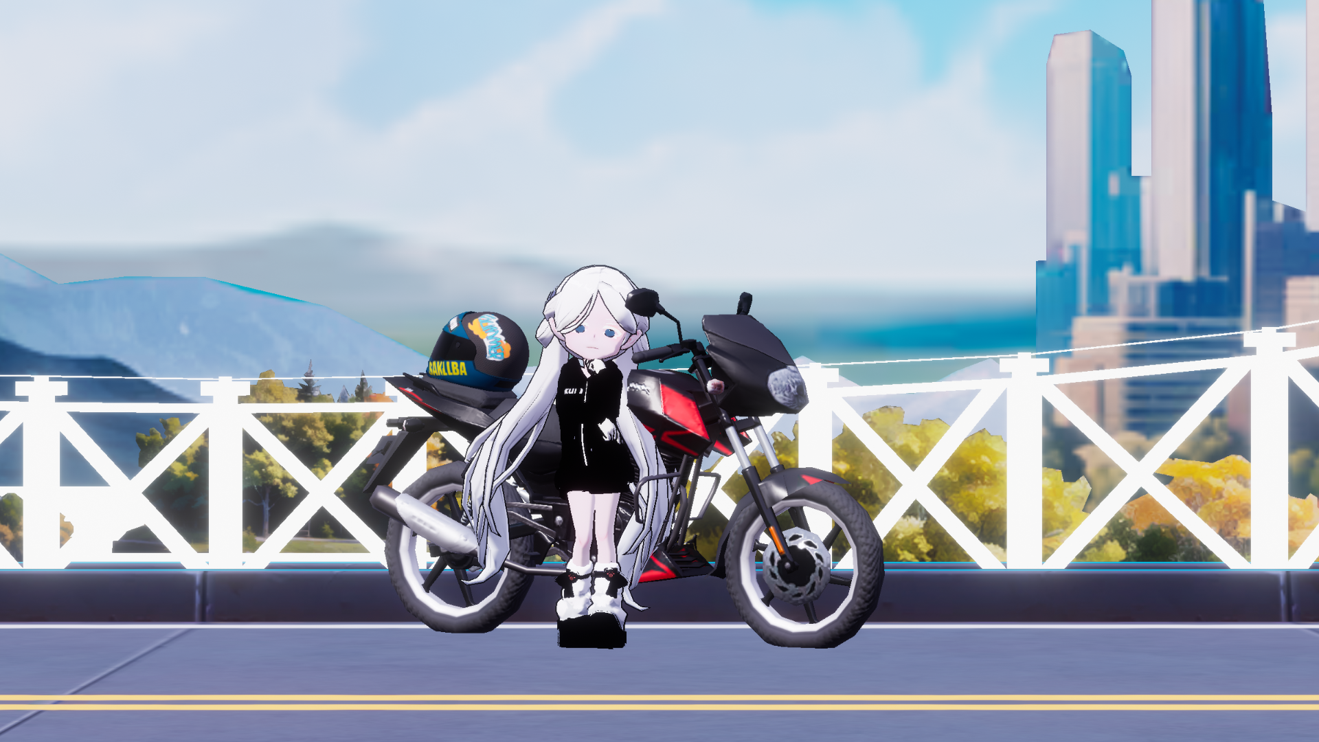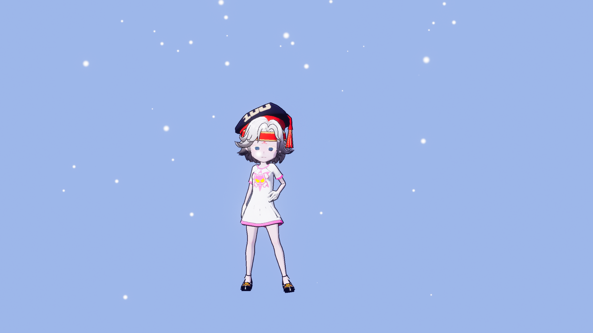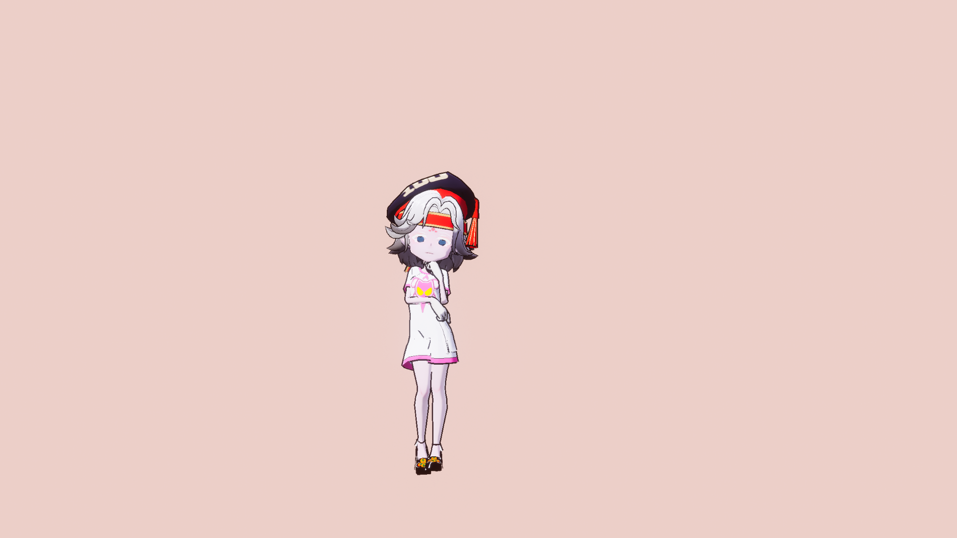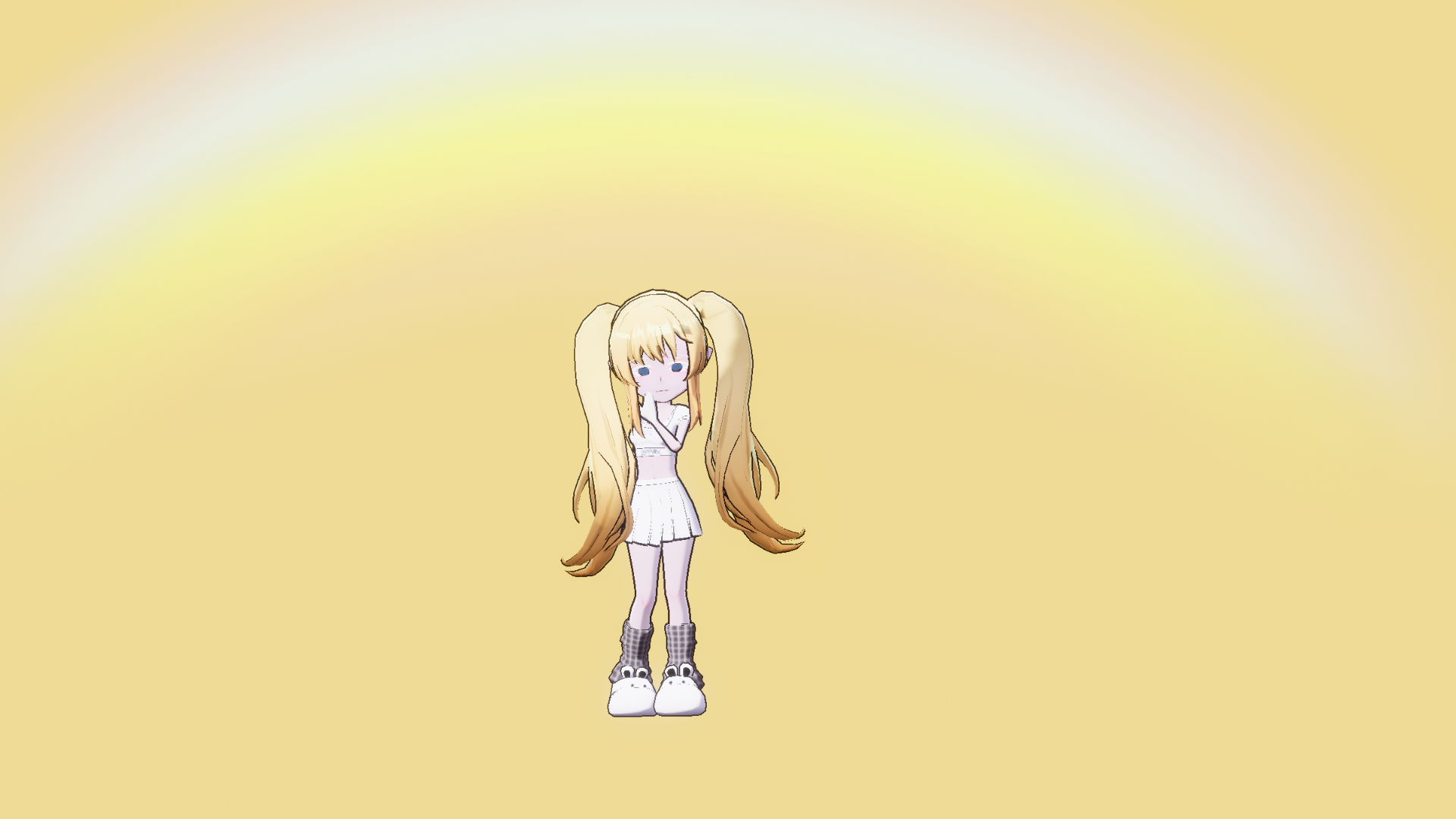 黄色头发,白色衣服。