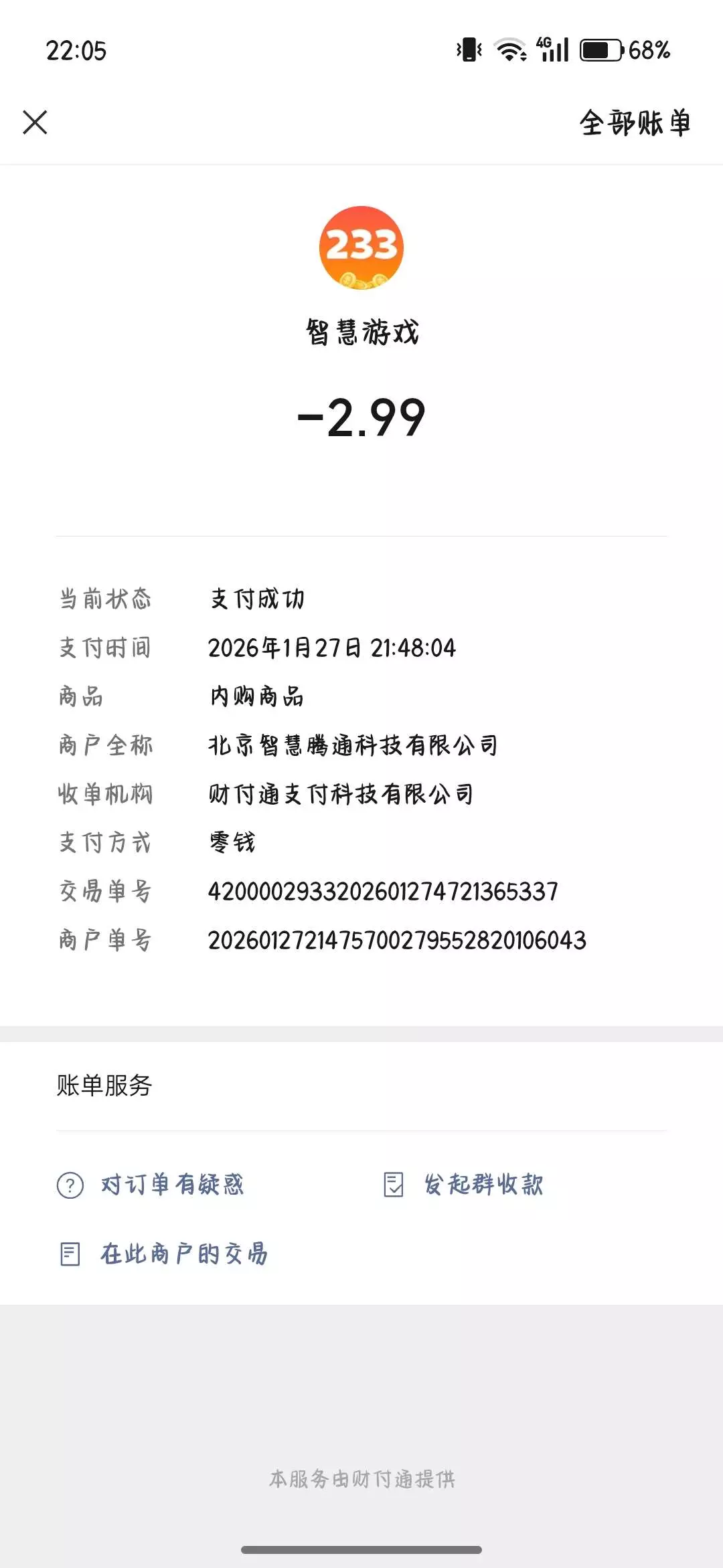 在233乐园的“我的礼包”和“乐币明细”里也都查不到相关订单,但我在微信/支付宝的支付记录里能找到这这笔交易。