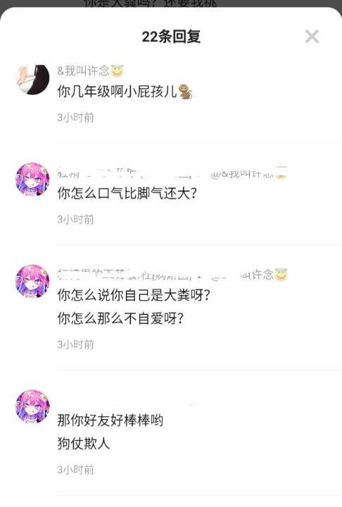 某些人,你搞不搞笑呀?不许欺负我闺,下不为例,要不然没你好果子吃,真的很搞笑耶,你是缺爱还是什么呀?收一收你的脏话,争取做文明少年好吗?无语死了-_-||(不许欺负我闺!!!)(我闺是粉色头像的那位)大家能帮忙举报吗?谢谢谢谢(233乐园号233号:156616038)