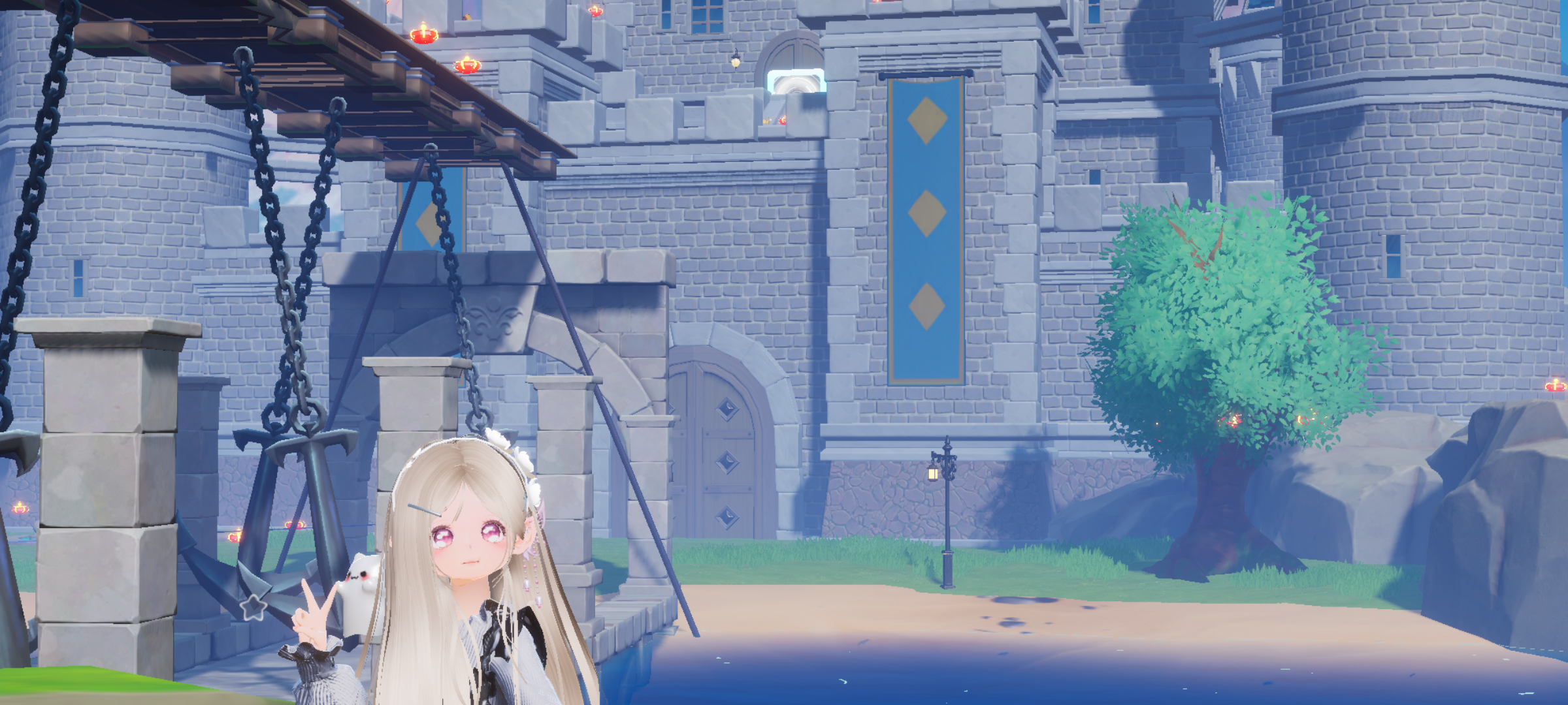 这个地图粉粉嫩嫩的,超级适合来打卡🤗,一望到底的溪流中隐藏着水精灵,莲蓬上有着欢快的草精灵,收集积分,充满了乐趣,旁边生长着樱花树,偷偷告诉你,在樱花树下表白成攻概率会更大哦~让人陶醉在着梦幻的国度,远处的风车,一草🌿一木都是美丽的象征,🌹🌹