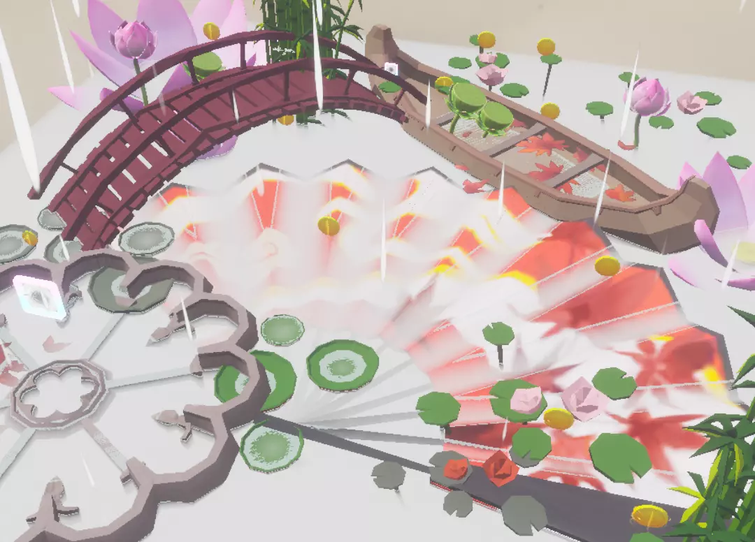 园林区:水中的薄雾笼罩着扇子,扇子上零零散散的金币等着你寻找,站在小桥上,宁听着雨听,多么的惬意,远处的小船,船上的荷花,荷叶,莲蓬,这不就是诗人诗中的画面吗?各种隐藏的金币,为玩家增添了探索的欲望……