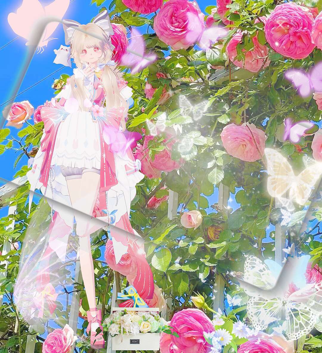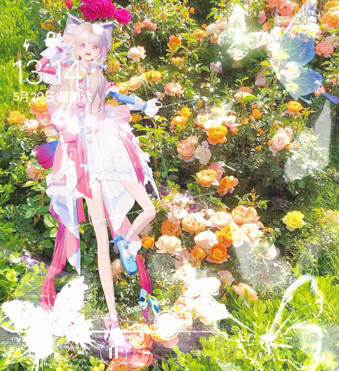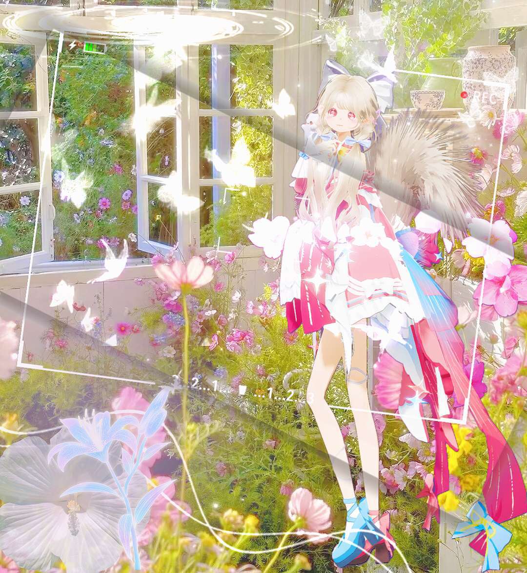 🌸场景2:微微触碰星光,眼前一亮,落入一片花海之中,和人差不多的花海,黄昏天空中有着淡淡紫🌇,远处的风车,触摸不到的大雁,蝴蝶🦋,背的的山丘,一切无不映照着“向阳而生”。不远处科技般的传送门。