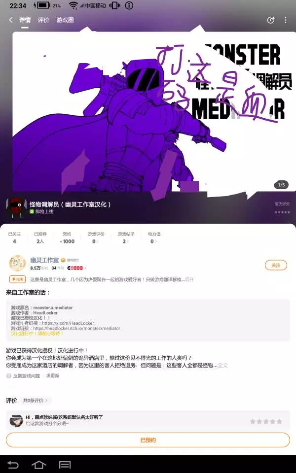幽灵工作室新游戏#怪物调解员要上线啦!预计是#10月18号,Oh,my god,我之前在一条帖子里面看到了有人说能不能上线怪物调解员,我看到了回答了他的问题:怪物调解员也挺冷门的,剧情也长,没想到真的上线了#幽灵工作室,我爱死你了!!😍家人们看到我这条帖子去关注或者评论一下吧现在热度<1000,期待不住了😋😋😋(这宣传图带点血,我打码了,不然过不了审。你们可以自己搜索去看看😊)