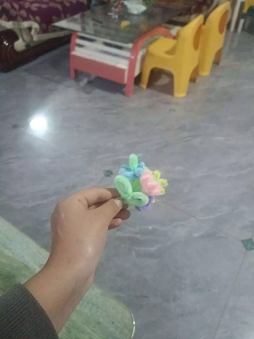 今天晚上做了一个小时的呃扭扭棒发箍和扭扭棒小花,非常好看哟。