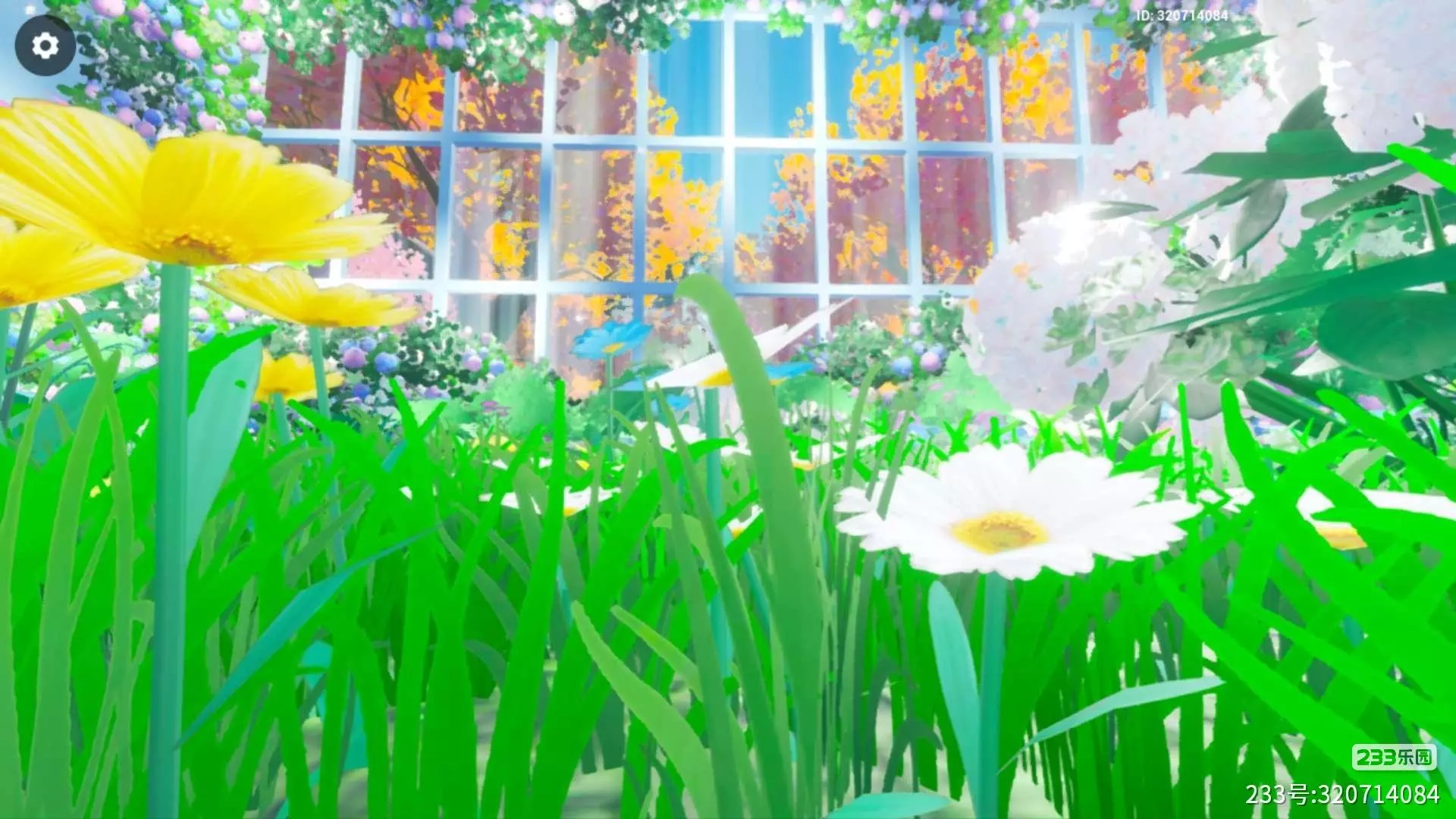"是一款繁杂田园风的大自然建筑🌱 运用了树木堆积、平头菇、白色花朵、黄色花朵、木质推拉门、钢琴、花瓶底座、花瓶、白色围栏,构成一个繁杂式建筑🌻"