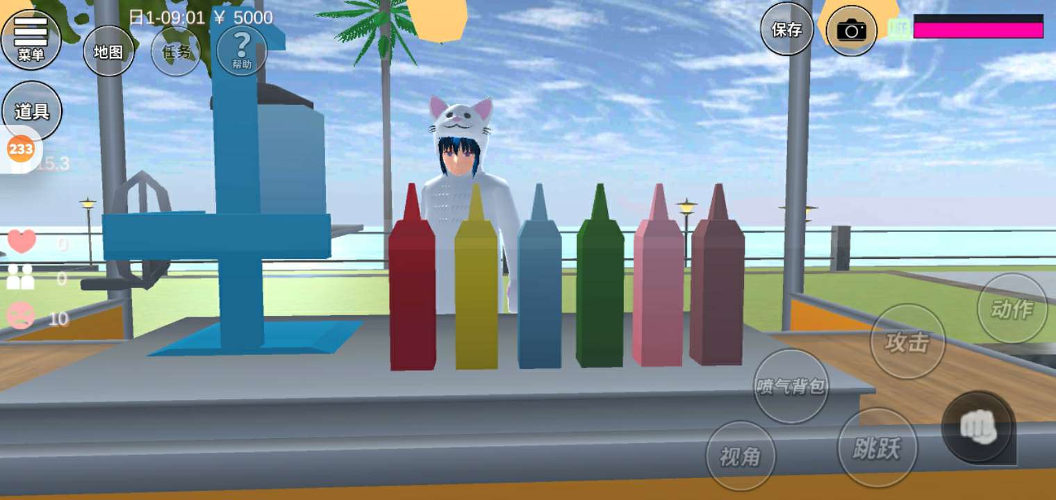 首先来到黑帮。去到黑前面骑车。把车开到黑帮里面,点攻击就可以了😊