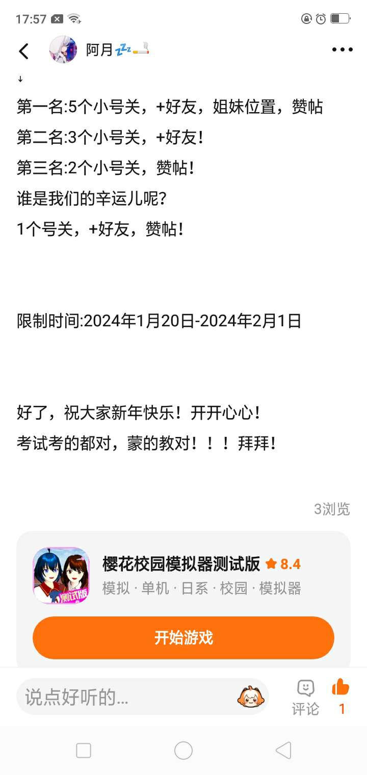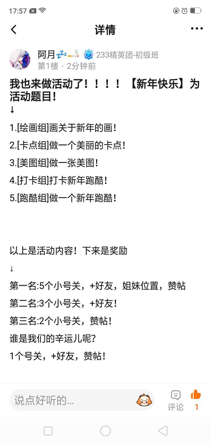 第一名:5个小号关,+好友,姐妹位置,赞帖