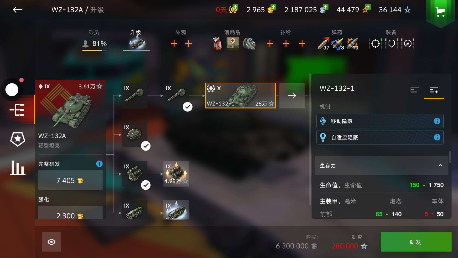 作为一辆传统的C系轻坦,它的缺点和优点都很鲜明,除了炮塔有点装甲剩下的地方有不了一点儿装甲,前置的油箱让你正面和对面打的时候油箱非常容易着火,虽然起步加速有点慢,但是最高可以跑67的速度,如在外它有1000的马力,绕一些中坦都可以的,6.7秒的装填和340的单发均伤都非常不错,还有当前全游最高的视野(好像是加完补给328米)