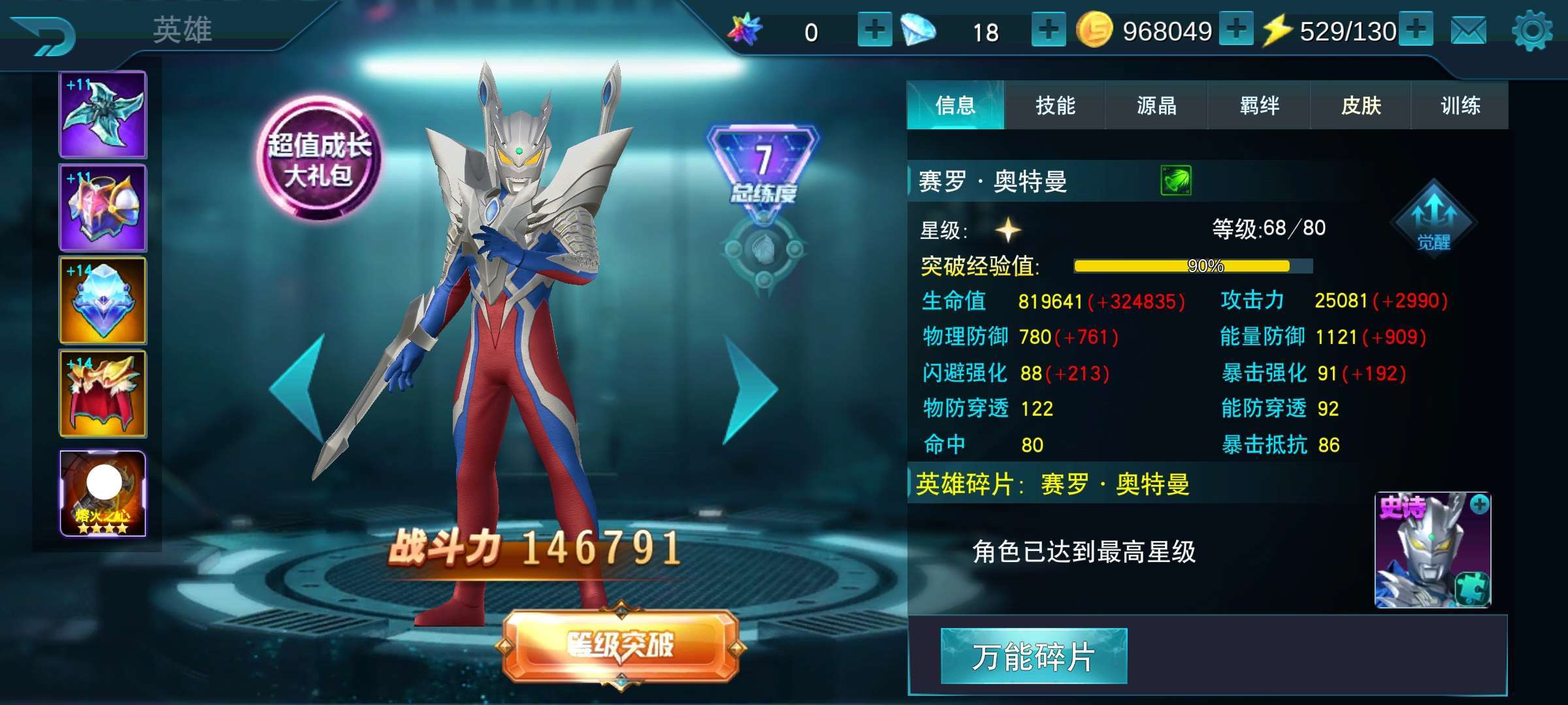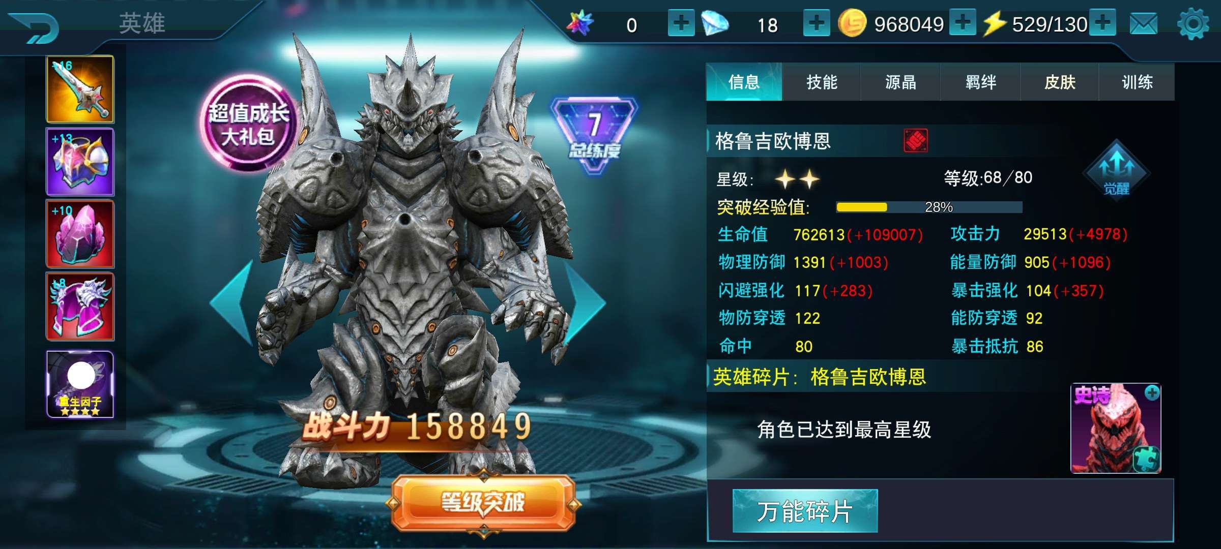 黑暗欧布终于六星了,虽然降了三万战力,但伤害还不错
