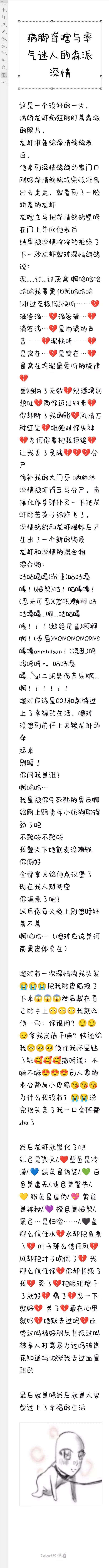 我已经💔喜欢上了夜💔也喜欢上了血💔喜欢独自一人💔小时候对朋友笑💔长大了对电脑笑💔小时候喜欢粉色💔长大了却喜欢黑色💔我喜欢大雨,因为这样就没人看出我在哭了💔我累了💔我想通了💔重新介绍一下吧💔爱哭脾气不好💔胆大💔有强迫症💔喜欢大笑💔成绩差💔打游戏很菜💔满嘴脏话💔爱骂人💔爱吃醋爱生气喜欢听歌睡觉吃东西缺乏安全感熬夜洁癖爱粘人话多不自信还有爱他