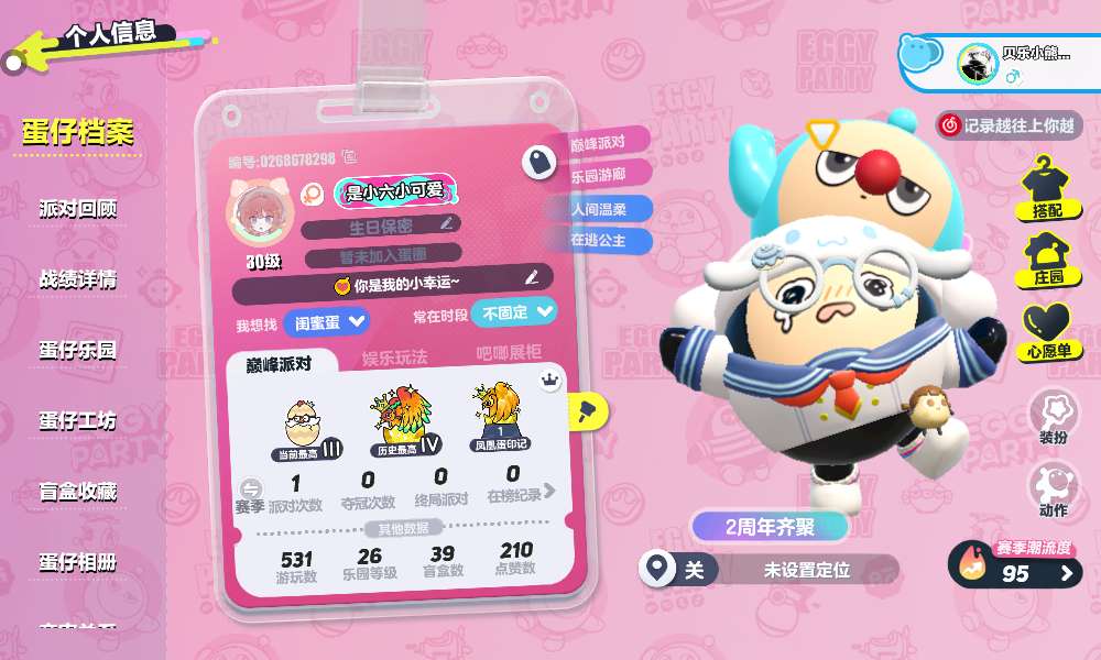 刚完233,希望能破200😭 !!! 蛋仔名:是小六小可爱