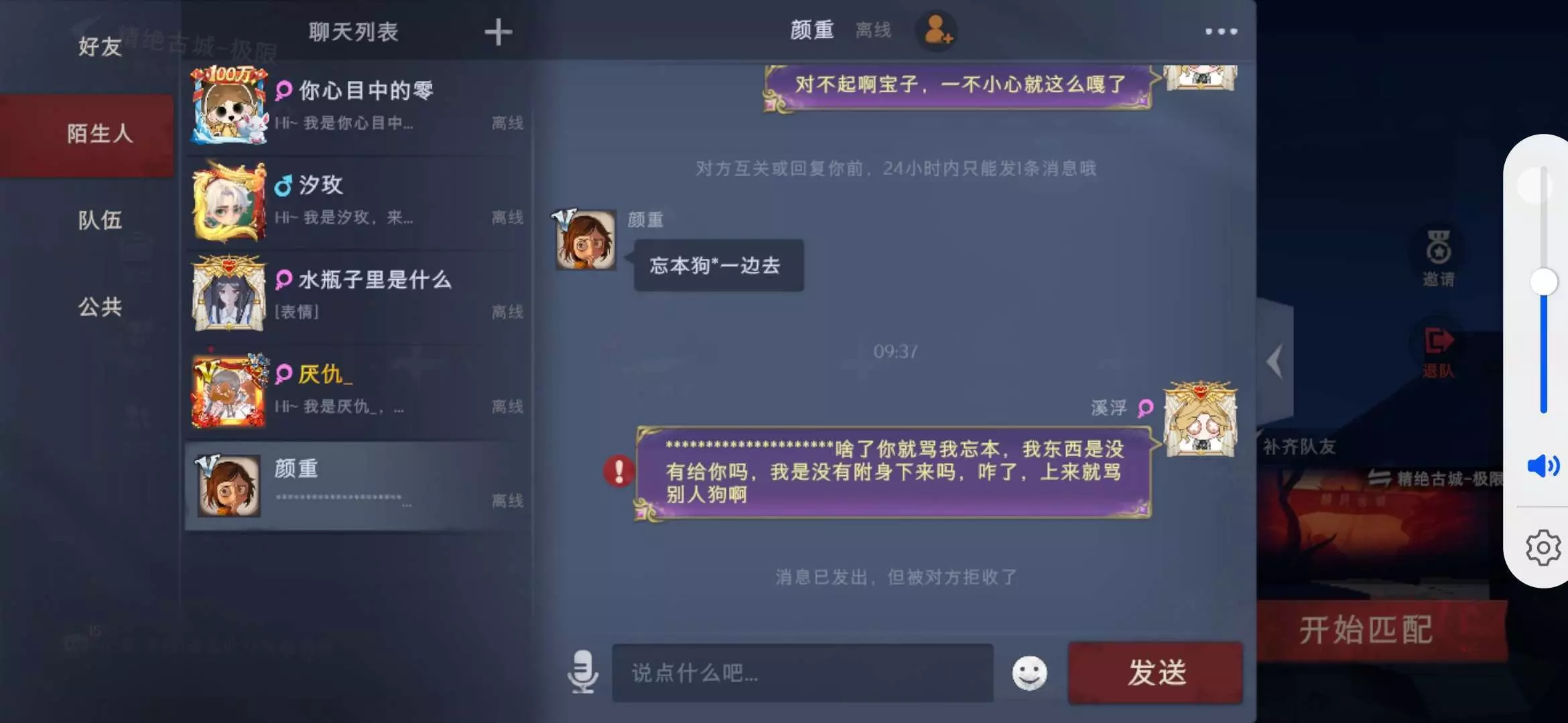 原本我在大厅上说昆仑求带,然后他把我拉进队伍里,我换成莉莉附身跟着他,前几把还好,然后嘛,到那一把的时候就有两只蛤蟆和一只鲶鱼围攻,我当时还卡退出了,急得很,再回来,然后就打了几下,就被那些怪物打死了,而且前几把我都没有把东西私吞,是丢给他了的,就那一把,打完他一上来就骂我忘本,真的是太厉害了