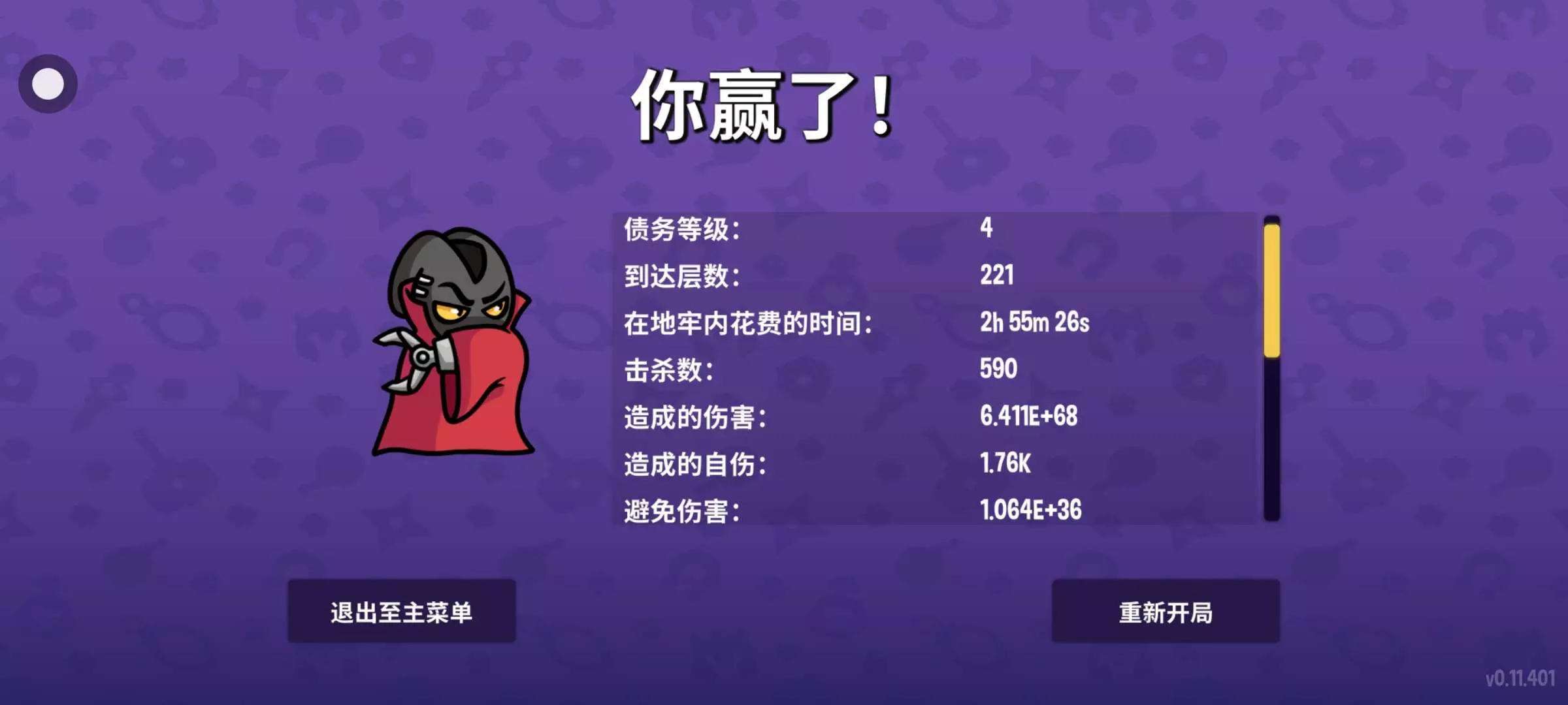 数值过大,血量都变成无限了,根本没法打了,221层就是最高极限