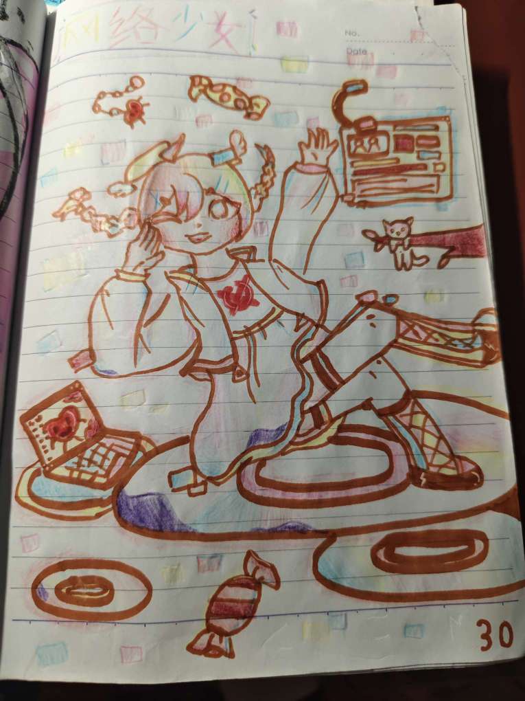 作者尝试画了个Q版人物。(没有自己的专属本子,不喜勿喷)