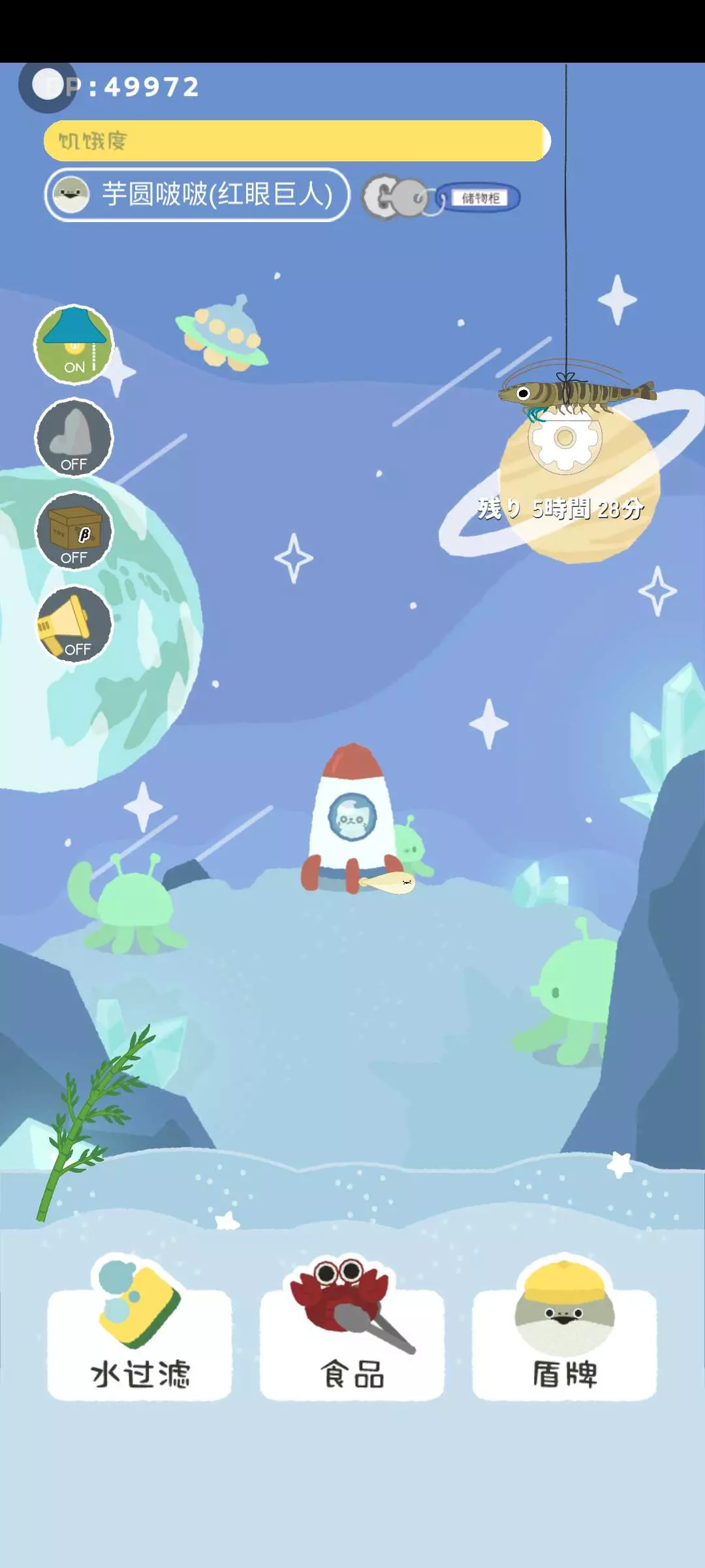 我就说今天来的狙击蟹怎么长得有点不一样?原来是偷我鱼呢。不过还好能帮我带6个小时的娃,但是6个小时后我就不能玩了,我还怎么给他关灯?这不死了吗?