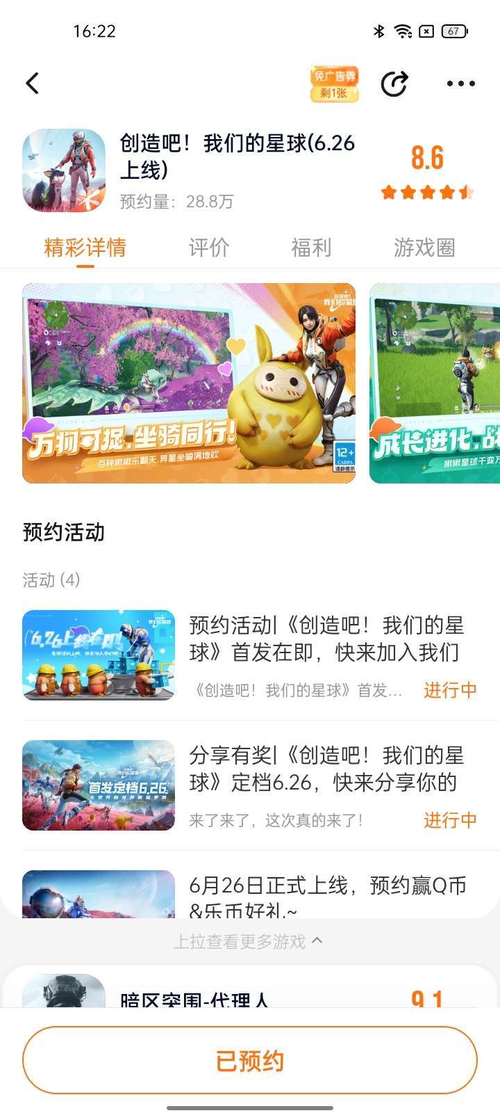启程测试 ,已预约破碎之地