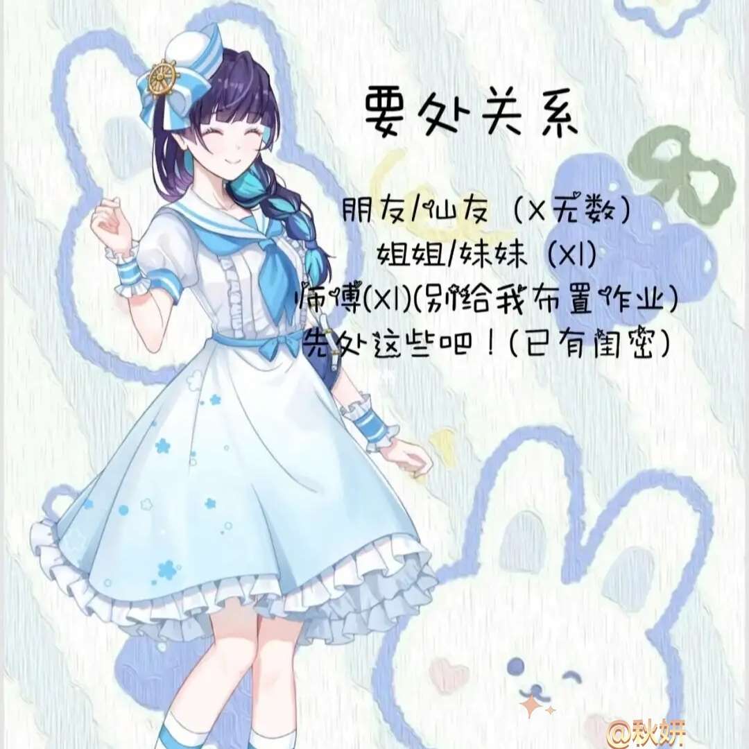 处关系: 姐姐X1 妹妹X1 弟弟无 哥哥无 师傅无 以下不可处! ↓ 闺蜜x1 心尖=闺蜜