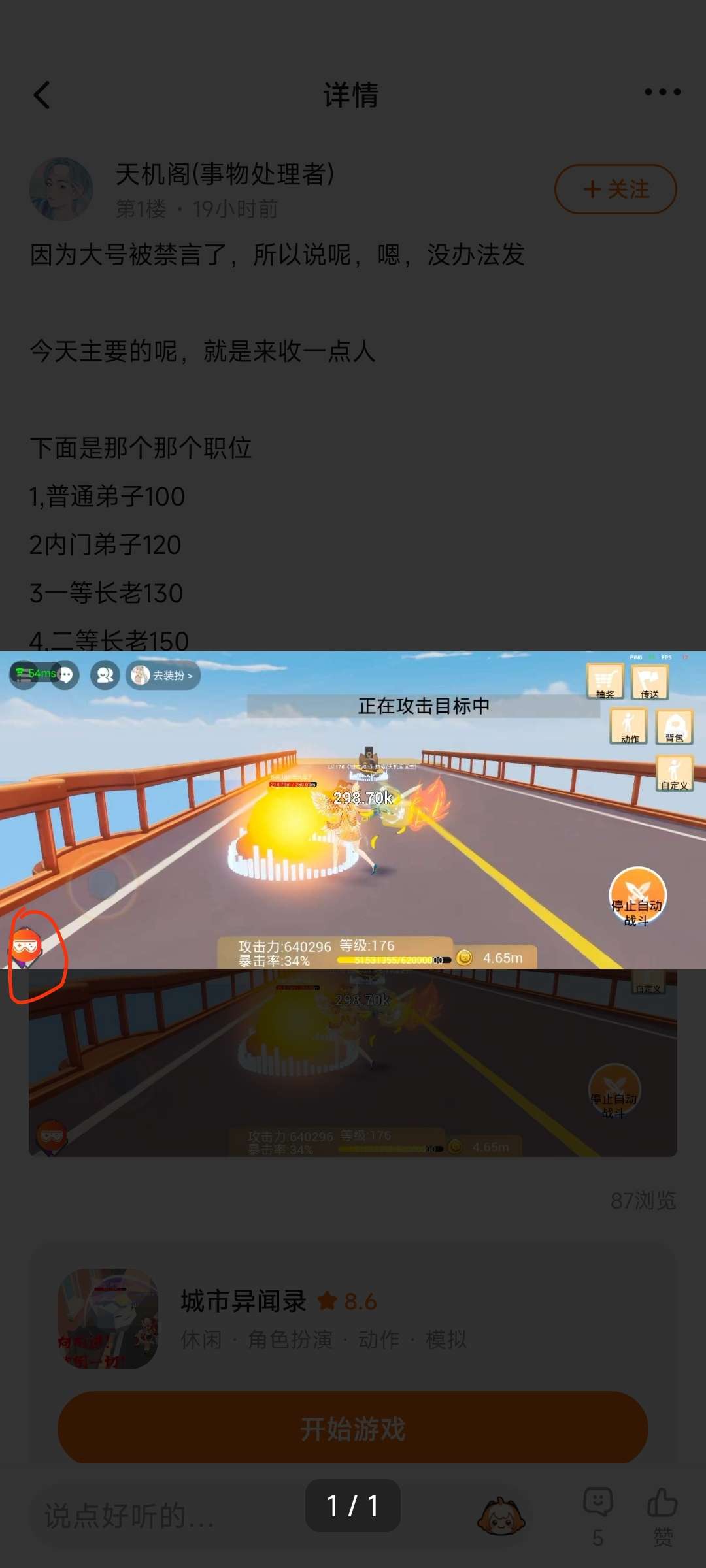 说我开修改器修改的,但可惜不是你们想的那样,我封的是利用bug刷广,,告,而且我根本就不知道啥bug,我只是拿着连点器设置了延迟30秒左右时间自己看广,,告而已,无非就是看但我4000万多广,,多了才认为我是利用bug而已,其实根本没啥依据以及证据。如果不信作者可加我好友,我录视频展示给你看,说我开修改器我在懒得和你们小孩子争,嫉妒使人面目全非,游戏不去挂,挂着不去玩,一周才玩两个小时你也说玩一周,这不纯纯搞笑吗,一天天的不就是盼着我被封,你们就开心了,还是我不带你们所以希望我被封。你整天遇到比你厉害的就是挂。我还是比较相信恶性论的,肝又肝不过,见人就知道说挂,说实在的游戏封了我还轻松多了,我也不用大半夜去起床看看游戏掉没掉线,一开始玩游戏是为了开心,但玩你这个妖怪跟上班一样,玩到15t打个蝙蝠都不能秒,一天不给你看个几百几千广,,告,根本不行。其实作者做的不是封号,而是想把我们这些数值高的人移除掉,好让那些不太肝的但又想上榜争一争的人来玩。作者要的是新人,谁在乎你这些肝帝。我记得这游戏有个成就是在线5000小时,你们拿命肝吧,我先撤了,浪费我钱去买年的云手机。